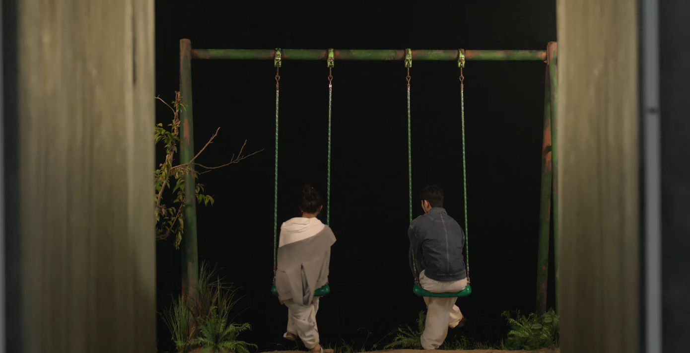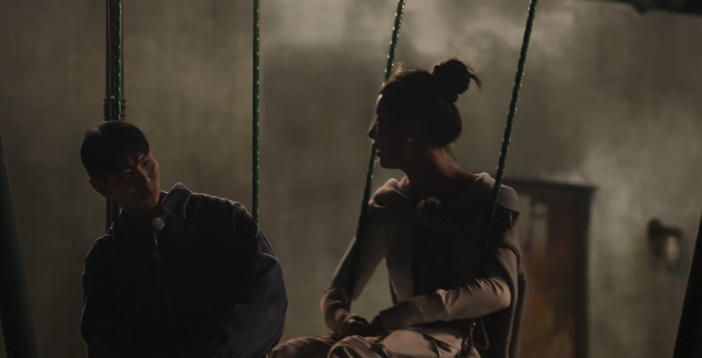 So sánh với một tình huống tương tự, Lee Si An rời khỏi buổi trò chuyện để ngồi xích đu. Người chơi này được quay ở góc đằng sau lưng, trông bình thường và dễ chịu.