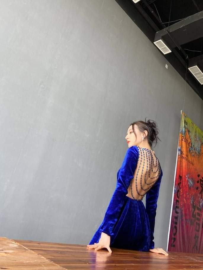 | Bộ váy xanh “mỹ nhân Tân Cương” diện ngay lập tức trở thành chủ đề nóng trên mạng xã hội Weibo. Mặt trước và phần lưng của bộ đầm được thiết kế đặc biệt giúp người đẹp 9x khoe được vóc dáng gợi cảm. |