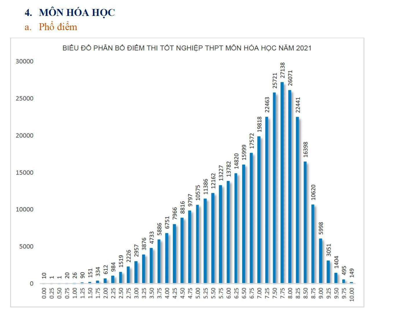 Trong khi đó, phổ điểm của các môn Lý, Hóa và Anh văn khá chênh lệch khi ở môn Lý, số thí sinh đạt điểm 10 là 14, môn Hóa là 149 còn môn Tiếng Anh là 4345.