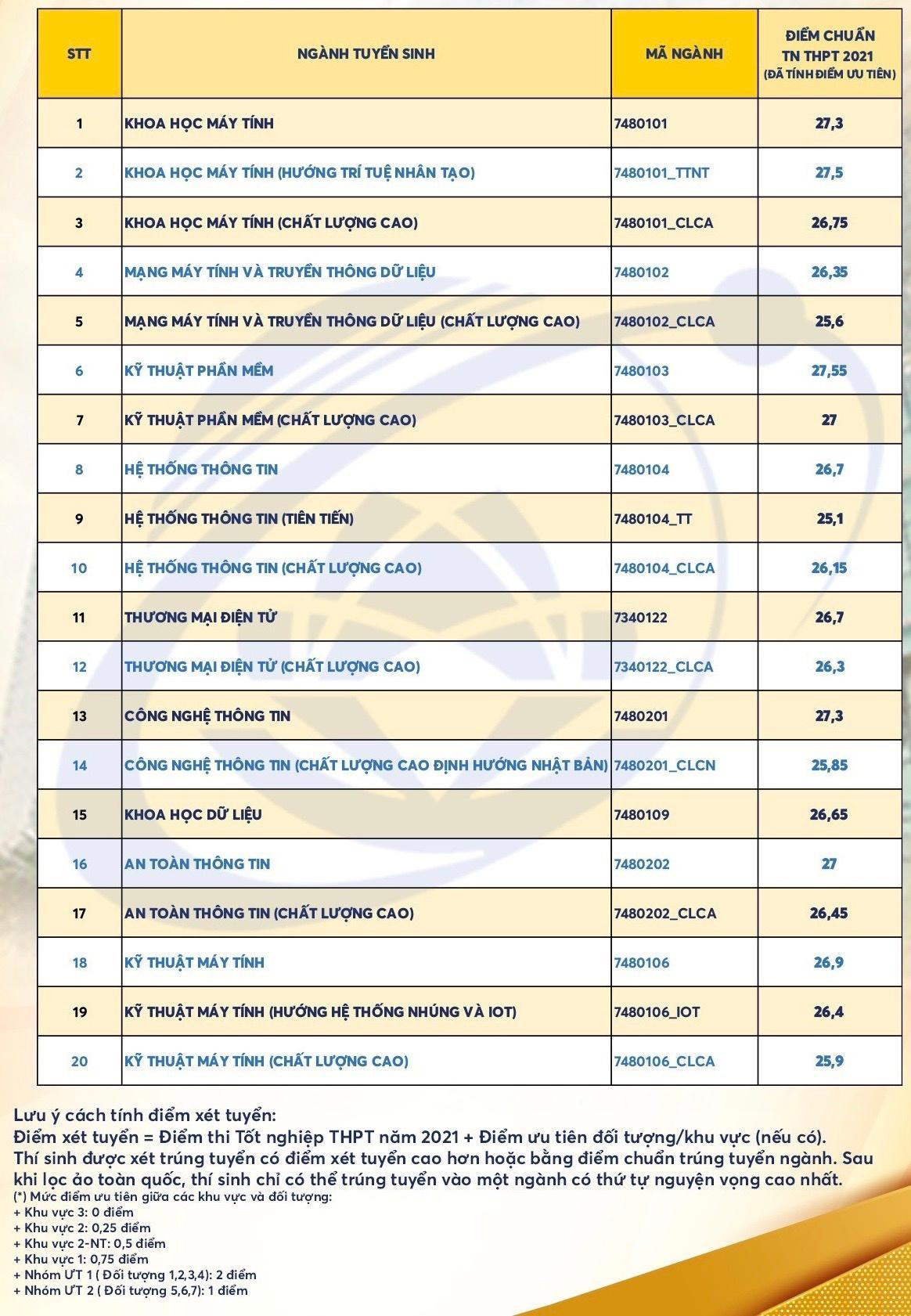 Trường ĐH Công nghệ thông tin TP.HCM vừa công bố điểm chuẩn theo phương thức điểm thi tốt nghiệp THPT, ngành cao nhất lấy 27,55 điểm.