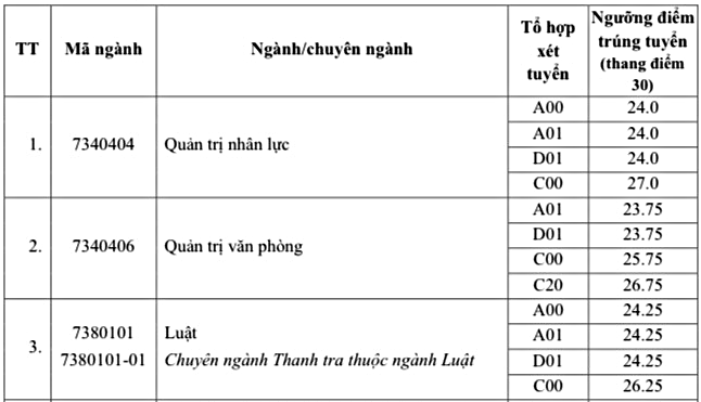 Điểm chuẩn ở trụ sở chính Hà Nội như sau: