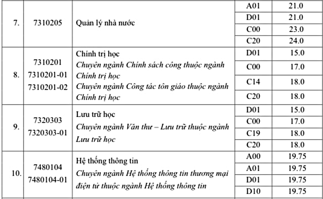 Ngành Kinh tế cũng tăng 3 điểm, từ 20,5 lên 23,5. Ngành ngôn ngữ Anh tăng 1,25 điểm.