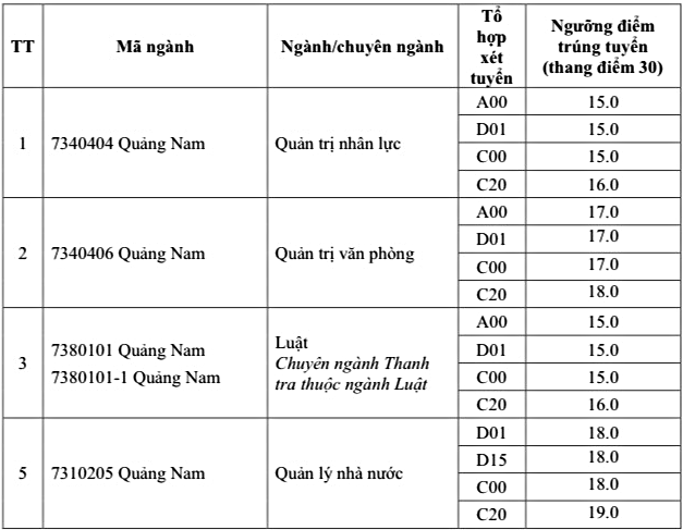 Điểm chuẩn ở phân hiệu Quảng Nam như sau: