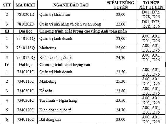 | Điểm chuẩn trúng tuyển của Trường ĐH Ngân hàng TPHCM |