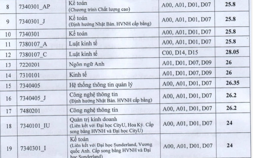 Điểm chuẩn các ngành của HV Ngân hàng cụ thể như sau: