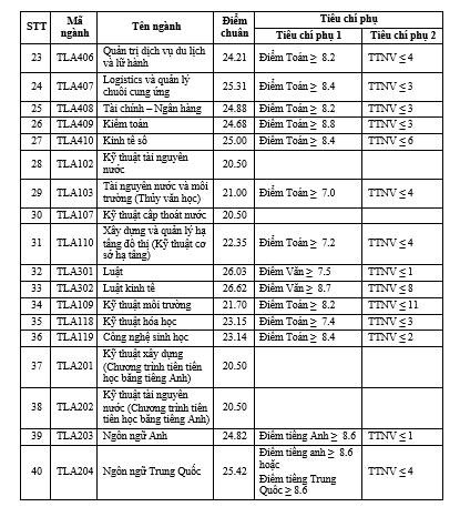 Theo đó, điểm chuẩn năm 2024 của Trường Đại học Thủy lợi dao động từ 20,5 đến 26.62 điểm.