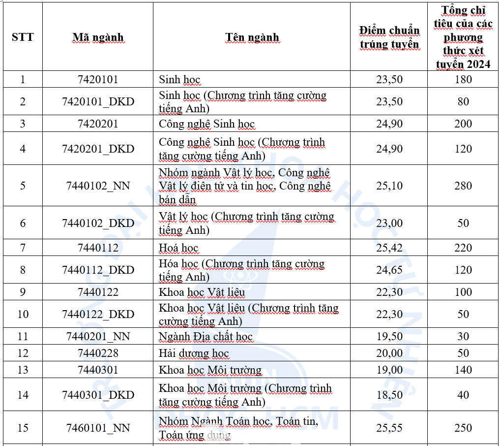 | Điểm chuẩn trúng tuyển Trường ĐH Khoa học Tự nhiên TPHCM |