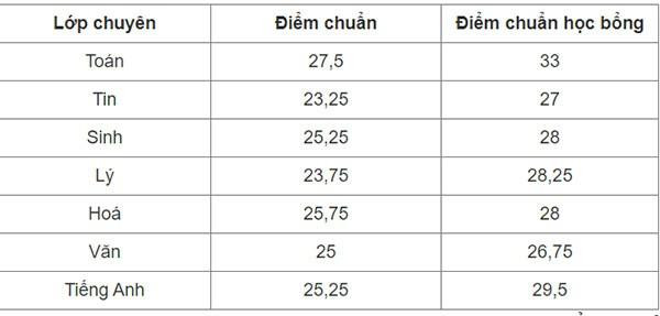 Đối với THPT chuyên Sư phạm, Đại học Sư phạm Hà Nội điểm chuẩn lớp chuyên Toán là 27,5 và thấp nhất là chuyên Tin 23,25. Cả 7 lớp chuyên của trường đều lấy điểm chuẩn từ 23,25 trở lên.