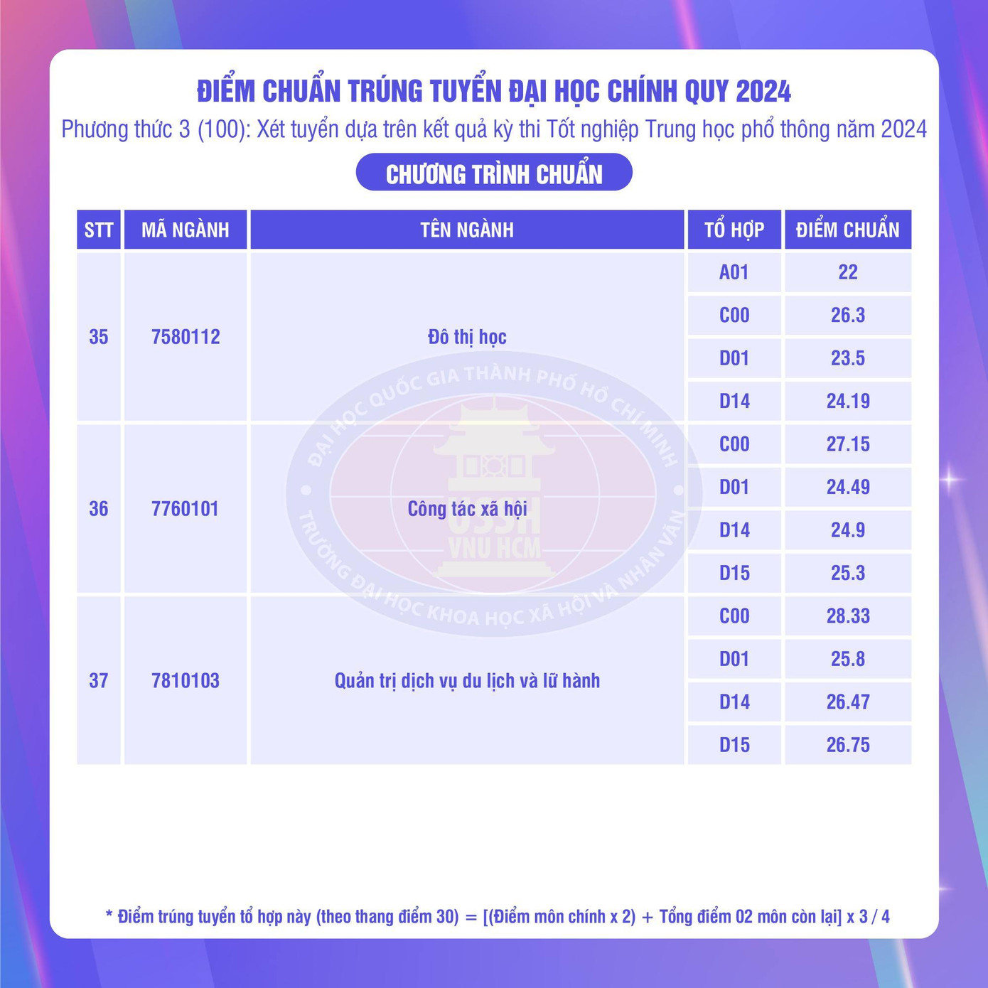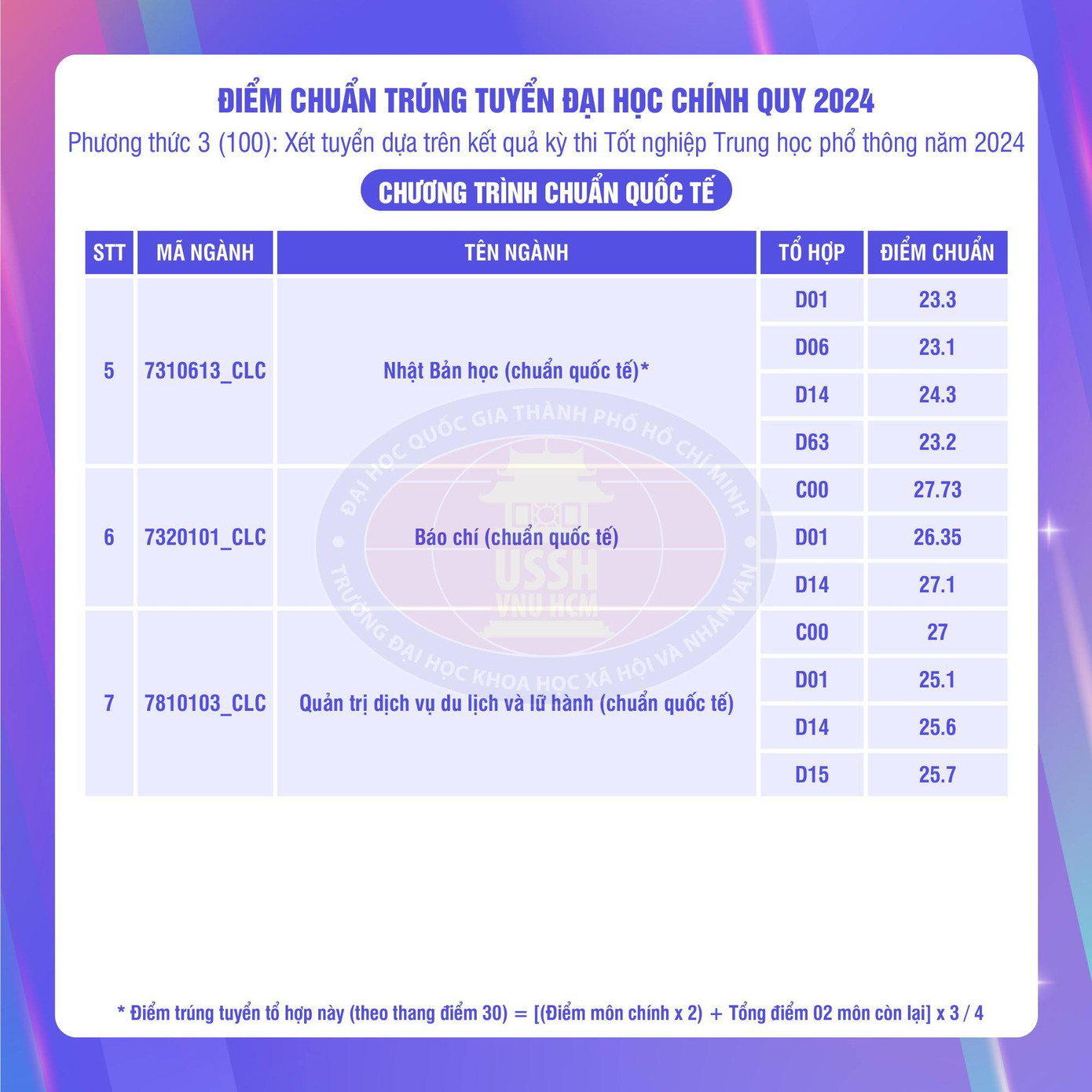 Trường Đại học Khoa học Xã hội và Nhân văn ĐHQG TP.HCM đã công bố điểm chuẩn cho phương thức xét tuyển sử dụng kết quả kỳ thi tốt nghiệp THPT (phương thức 3).