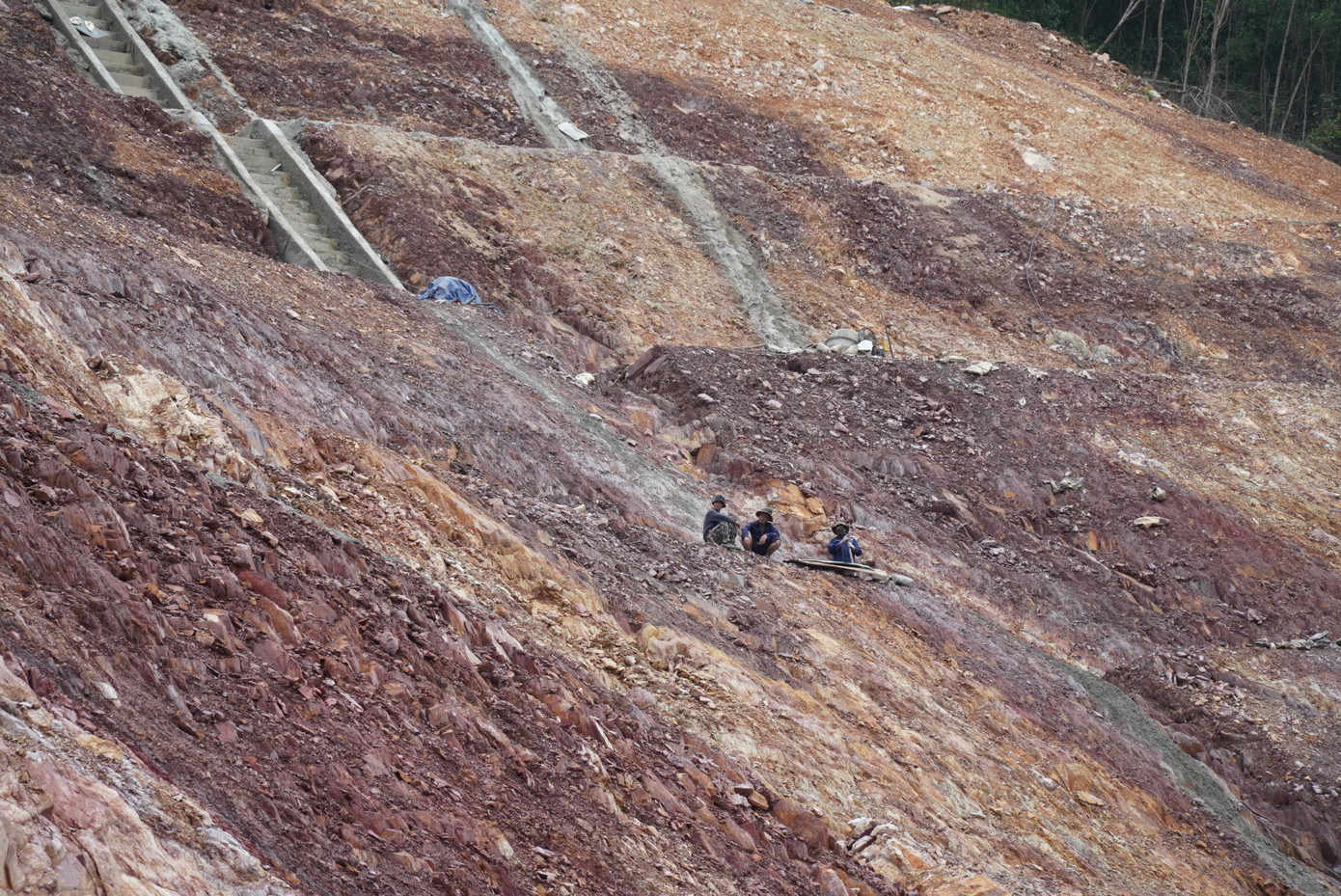 | Đơn vị nhà thầu đã thuê đất rừng trồng của người dân để mở đường tạm cho các phương tiện máy thủy lực khoan đá, máy múc công suất lớn tiếp cận đỉnh đồi. Khối lượng đất đá đã xử lý tại vị trí sạt trượt trên lên tới hàng chục nghìn khối. |