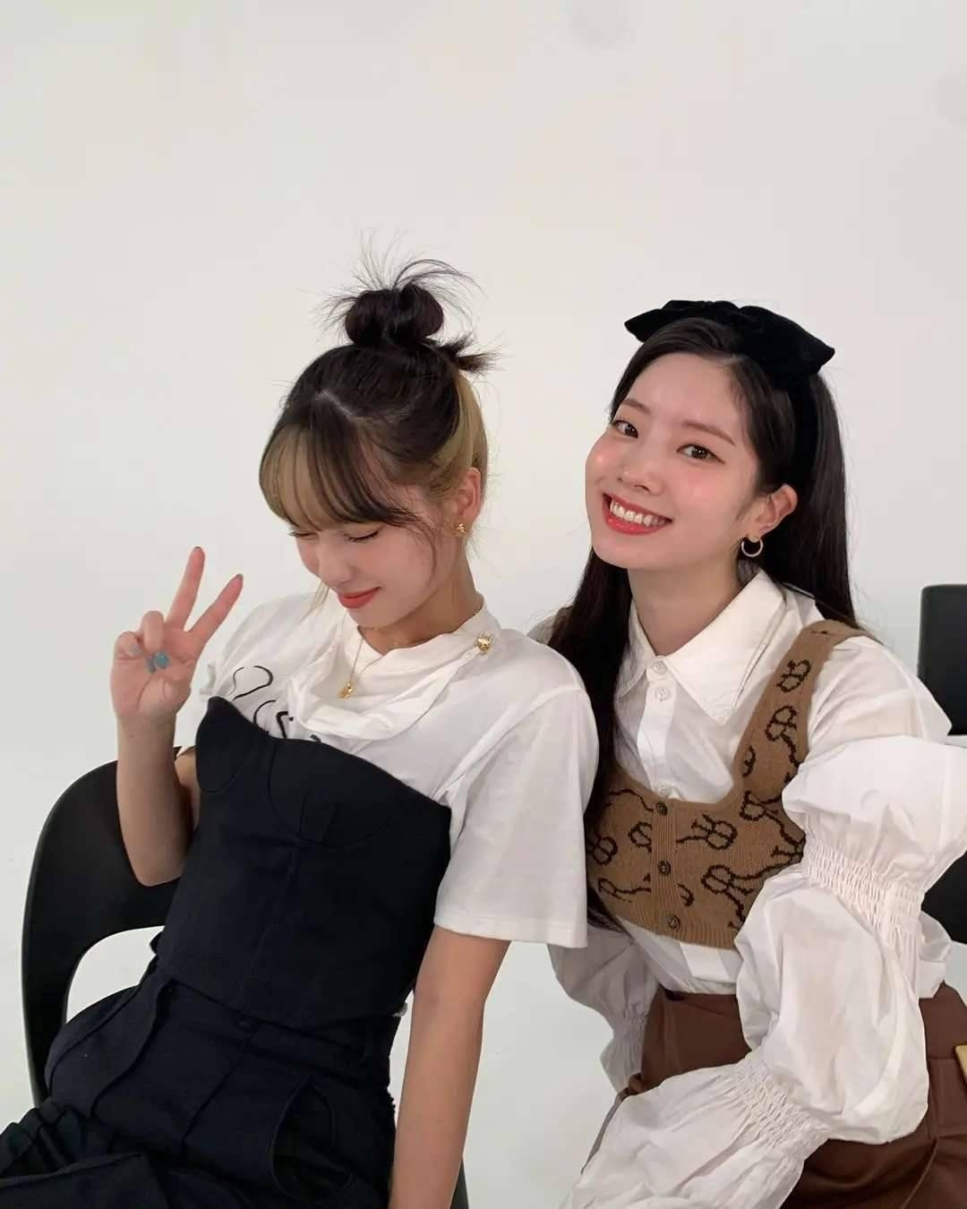 Không chỉ có hai thành viên BLACKPINK yêu thích mẫu áo crop-top cực kỳ tôn dáng này mà Dahyun (TWICE) cũng vừa diện thiết kế giống hệt với Rosé. Nhưng cô lại phối đồ khác hẳn khi mặc kèm một chiếc áo sơ mi tay bồng điệu đà.
