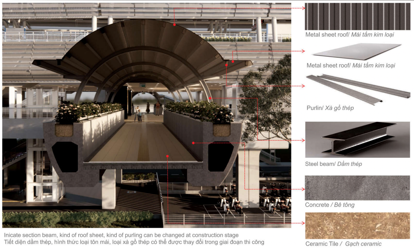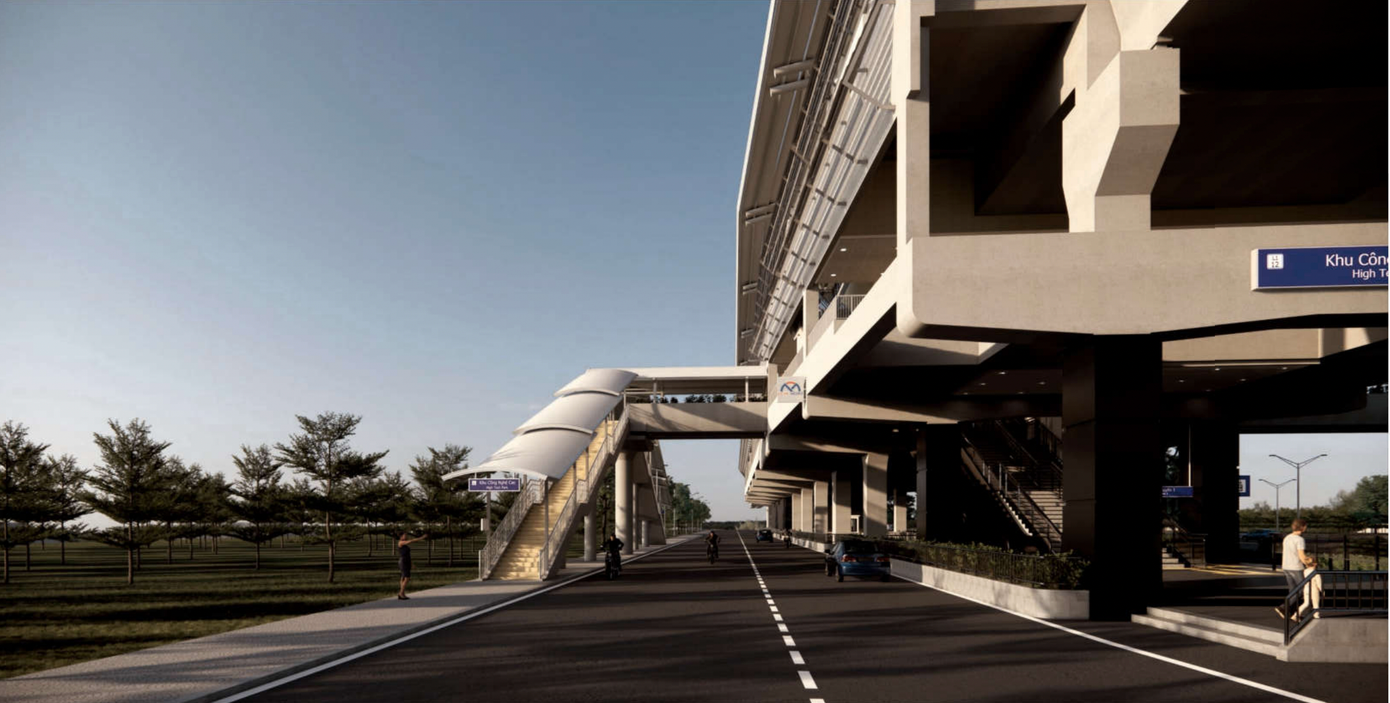 | Phối cảnh một phần cầu vượt bộ hành kết nối với nhà ga Khu Công Nghệ Cao. |