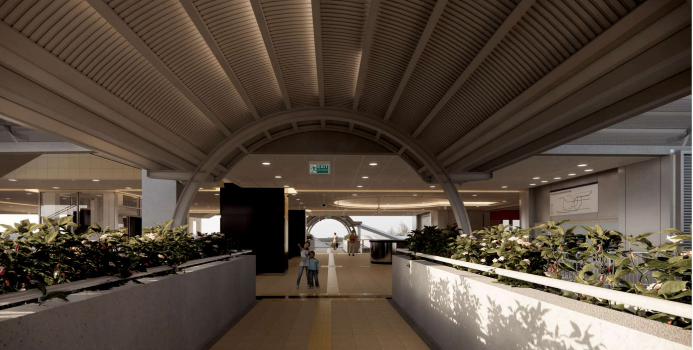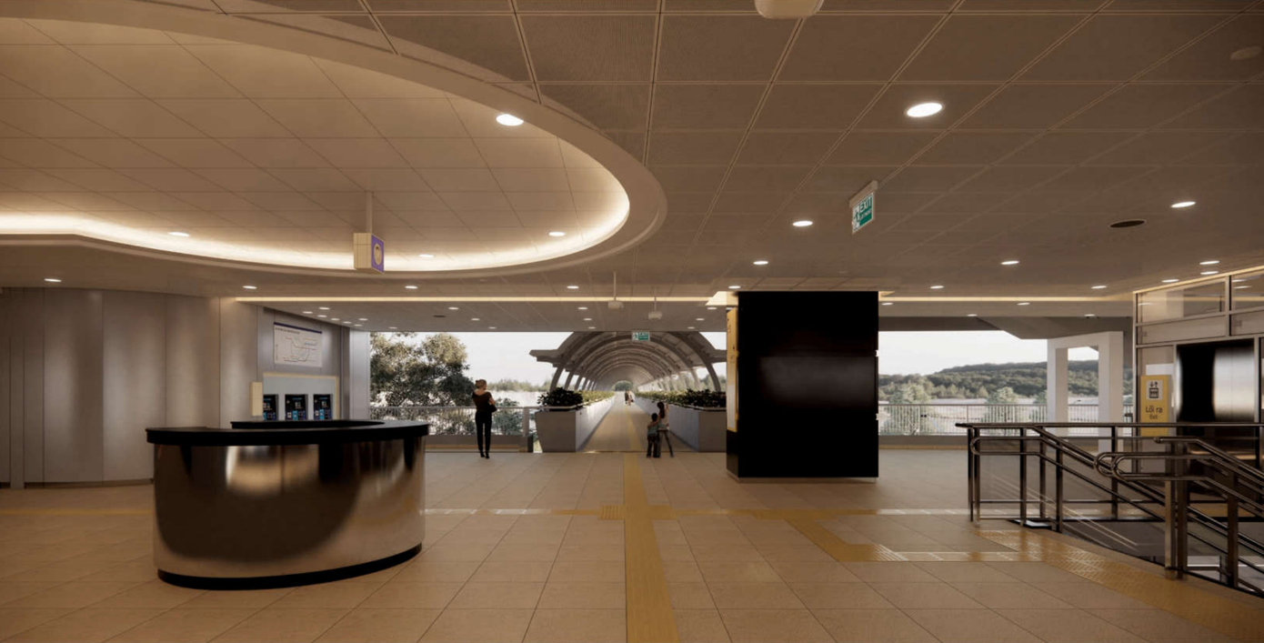 | Cầu bộ hành sẽ kết nối với các điểm dừng chờ xe buýt và khu dân cư nhằm mục đích tăng cường khả năng tiếp cận nhà ga. |