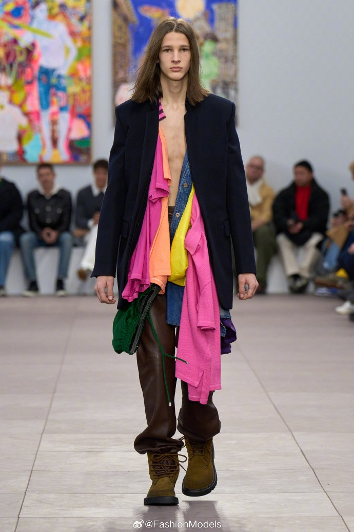 Trong đó, mẫu áo khoác dài được thiết kế gắn kèm các lớp áo phông, quần thể thao màu sắc sặc sỡ đến từ BST Thu/Đông 2024 dành cho nam của nhà mốt "chiếm spotlight". Nhiều ý kiến khen ngợi khả năng "cân" trang phục độc lạ của Vương Nhất Bác.