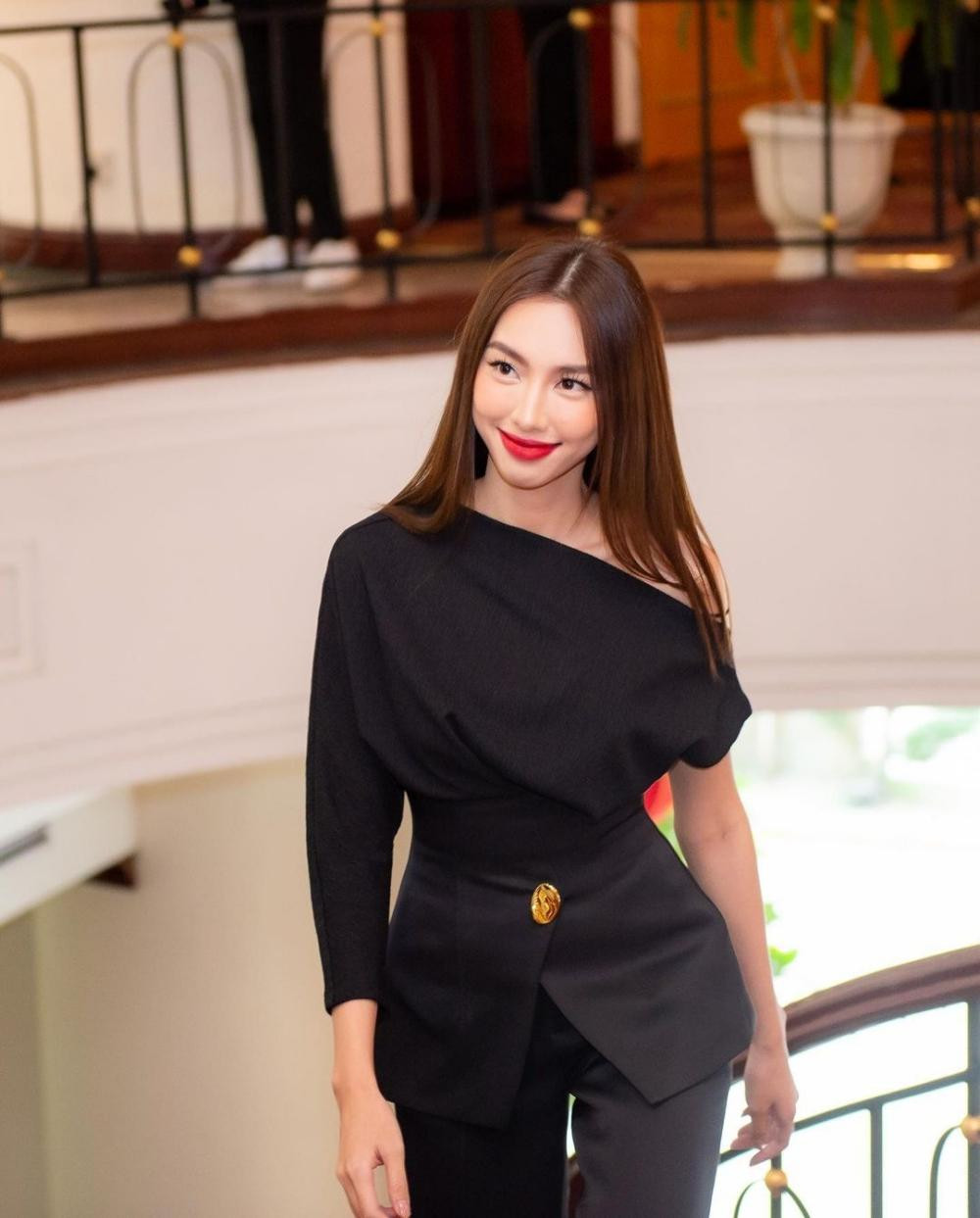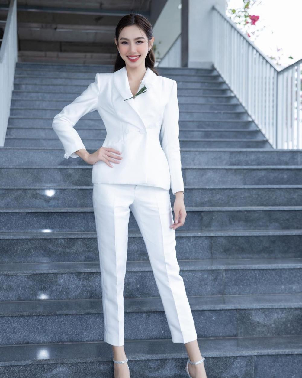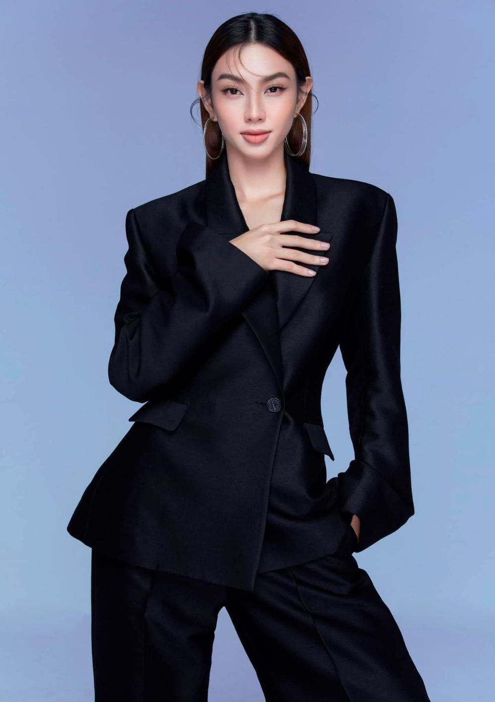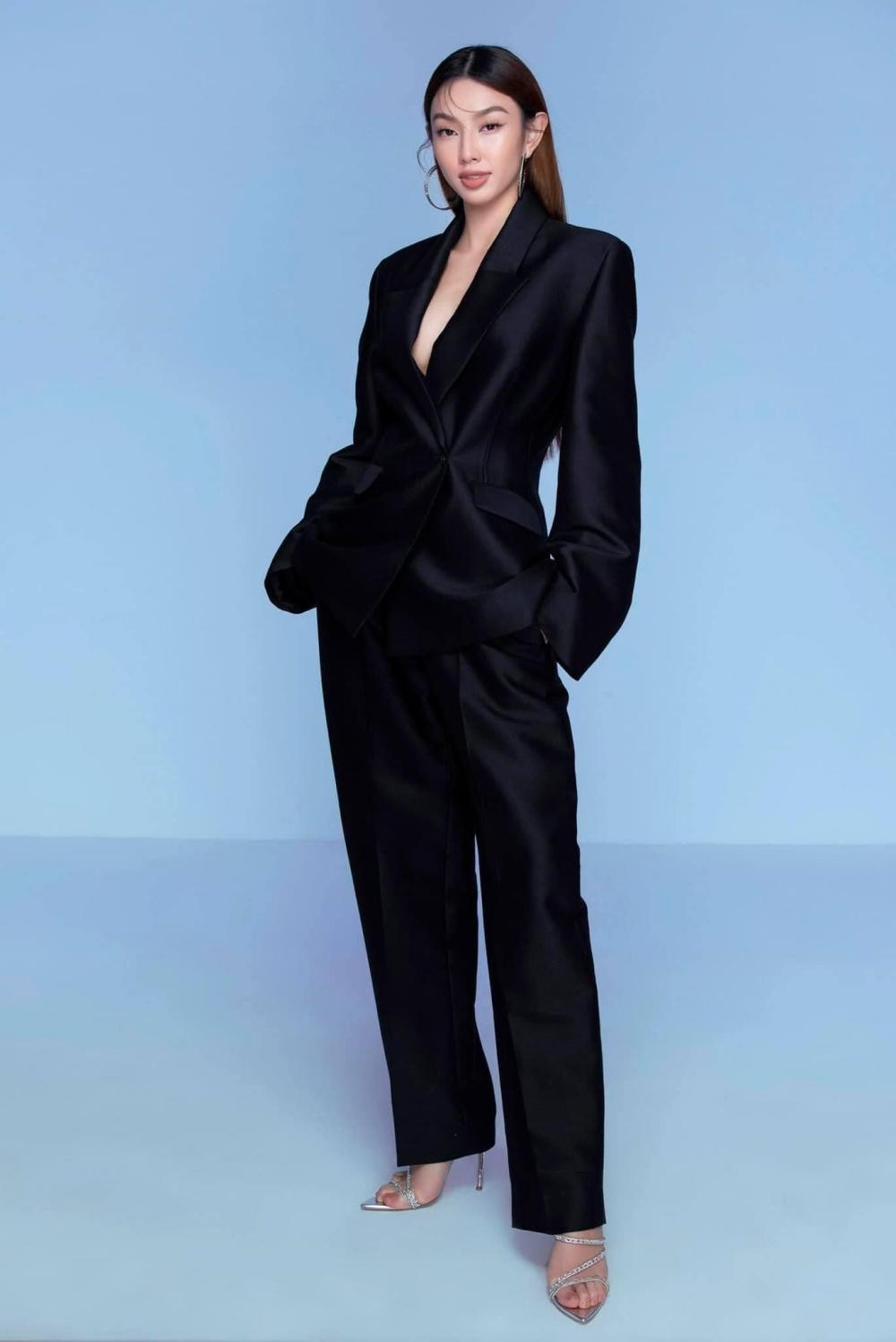 Với bộ suit đen, người đẹp lại mang đến cảm nhận về một nữ tổng tài thành đạt và quyền lực. Hoa hậu Thùy Tiên cũng diện hai bộ suit mang tông màu đen và trắng cho hai sự kiện truyền thông gần đây.