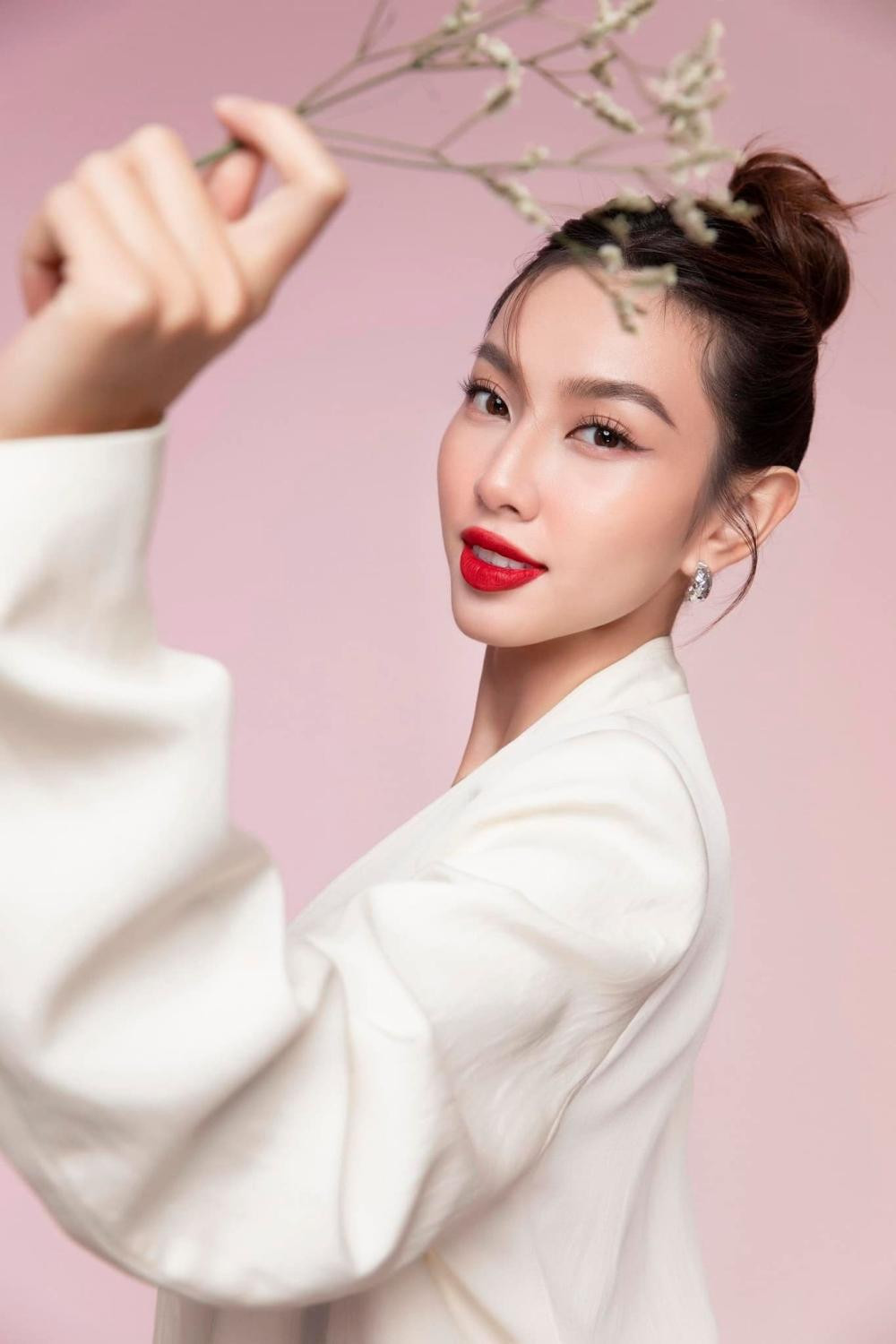 Cho đến thời điểm này, Hoa hậu Thùy Tiên đã tung hai bộ ảnh mặc suit cách điệu đen và trắng, với mỗi tông màu, người đẹp lại mang đến thần thái khác biệt. Với bộ suit trắng, Thùy Tiên vấn tóc cao, xinh đẹp thanh lịch và có phần dịu dàng.