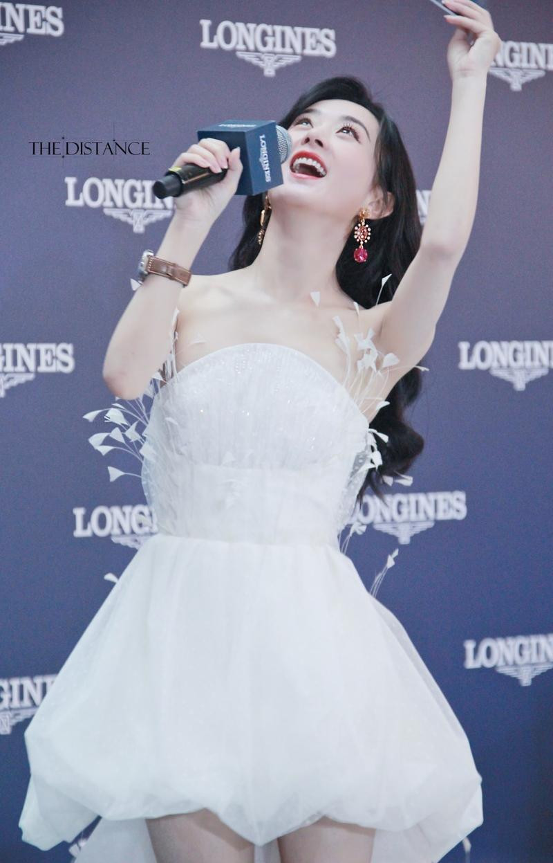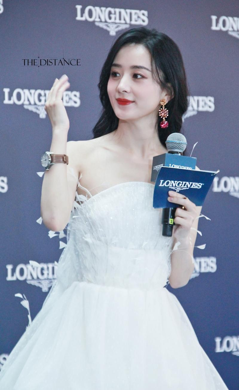Tham dự sự kiện quảng bá cho thương hiệu đồng hồ Longines tại Thượng Hải, Triệu Lệ Dĩnh mặc chiếc váy trắng tinh xinh đẹp như cô dâu trong ngày cưới, thu hút mọi sự chú ý của truyền thông.