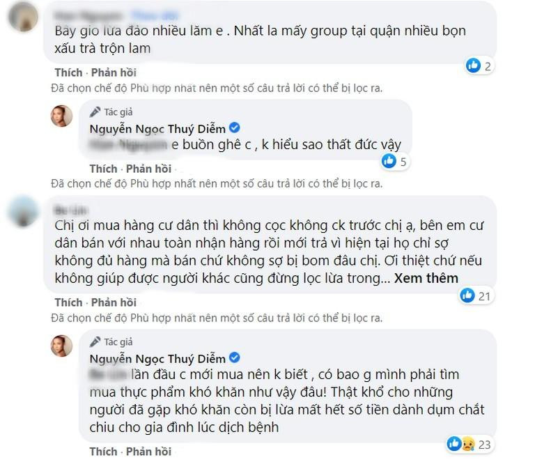 Sau chia sẻ của nữ diễn viên, nhiều người cũng bình luận đã gặp tình trạng tương tự và nhắc nhở nhau nên cẩn thận khi đặt mua hàng online. "Bây giờ lừa đảo nhiều lắm, nhất là trong group của các quận, bọn xấu trà trộn rất nhiều", "Thời điểm dịch này rất hay có những trường hợp như vậy, cẩn thận vẫn hơn",...