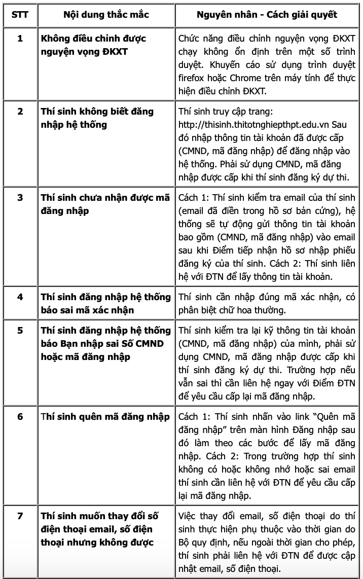 | Một số thắc mắc và cách khắc phục khi điều chỉnh nguyện vọng trực tuyến năm 2021. |