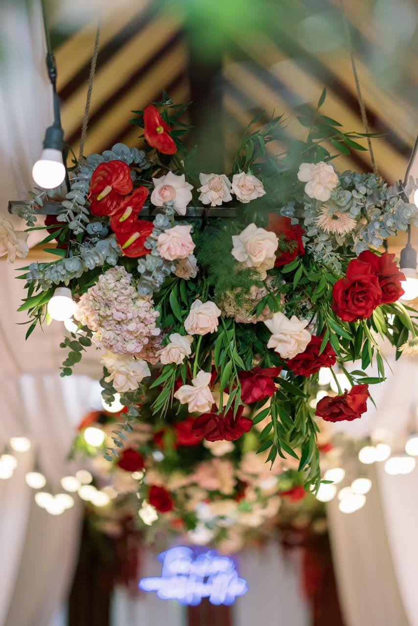 Không gian lễ cưới được trang trí chủ yếu bằng hoa hồng, hoa phăng, cẩm tú cầu với tông màu chủ đạo là màu trắng, vàng, hồng. H’Hen Niê cho biết cô dự định tự mua hoa về cắm nhưng do bận và tự trang trí nhưng do quá bận nên thuê ê-kíp thực hiện. Người đẹp còn hài hước tiết lộ ý tưởng cắt hoa cà phê để làm điểm nhấn cho ngày trọng đại.