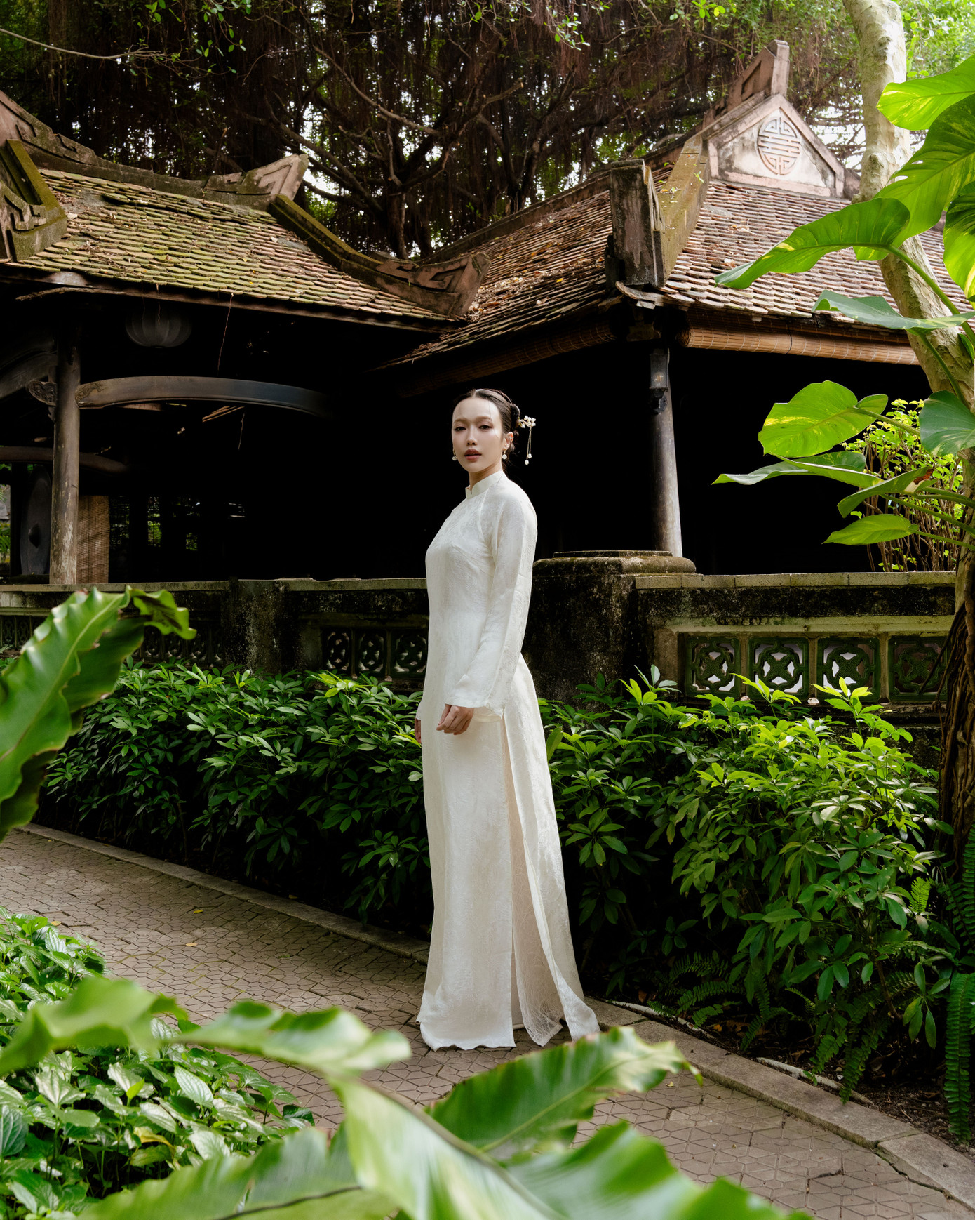 Trong bộ ảnh mới, Diệu Nhi diện các thiết kế truyền thống, với chất liệu, màu sắc khác nhau. Tông trắng pastel nhẹ nhàng được nữ diễn viên ưu ái hơn cả, khi mang đến hình ảnh 'nàng thơ'. Nữ diễn viên thử sức từ áo dài dáng suôn có áo khoác ngoài, áo dài cổ trụ chiết eo, đến mẫu váy yếm cách điệu.