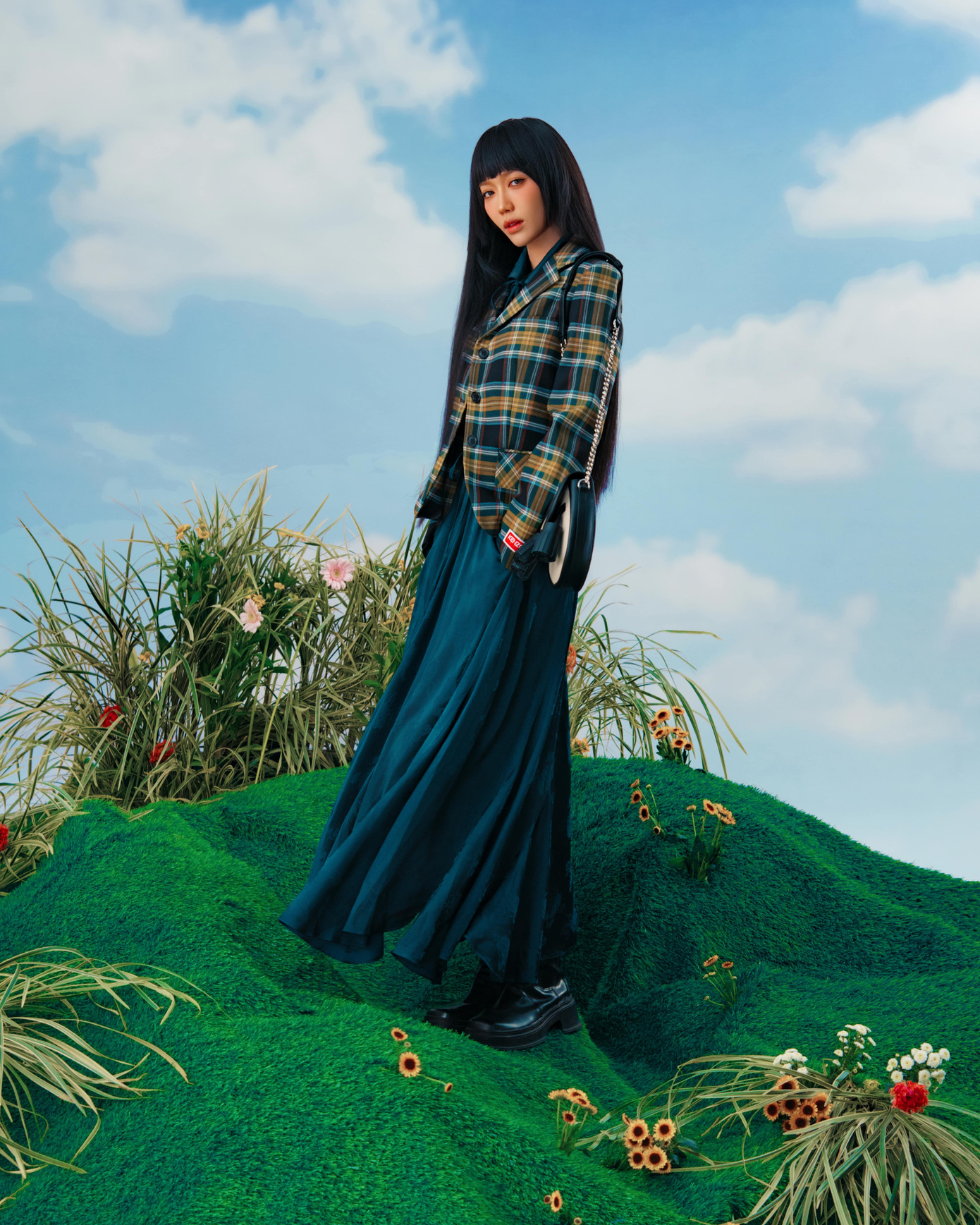 Khác với số đông nghệ sĩ nữ chọn hình ảnh dịu dàng, chụp hình cùng mẹ trong dịp 8/3, Diệu Nhi lại mang đến hình ảnh cá tính và thời thượng. Cô diện trên mình bộ cánh với gam màu trung tính nhưng khéo kết hợp với họa tiết caro, dáng áo độc đáo khiến tổng thể trở nên hút mắt hơn.