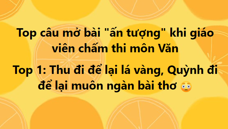 Cụ thể, với câu Nghị luận văn học (5 điểm), khi bàn về nội dung, nghệ thuật của hai đoạn thơ trong tác phẩm "Sóng" và vẻ đẹp nữ tính của nhà thơ Xuân Quỳnh, có thí sinh đã dẫn dắt phần mở bài bằng câu thơ: "Thu đi để lại lá vàng/ Quỳnh đi để lại muôn ngàn bài thơ"...