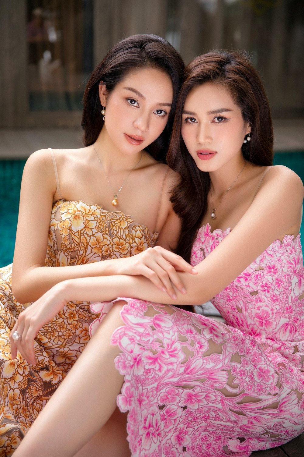 Hai nàng hậu chọn hai thiết kế váy hoa với màu sắc tươi sáng, kiểu dáng quây ngực khoe bờ vai thon. Nhan sắc của Hoa hậu Đỗ Thị Hà và Hoa hậu Thanh Thủy quả thật đều “mười phân vẹn mười”, đúng như caption của Đỗ Thị Hà dành cho bộ ảnh: "Đầu lòng hai ả tố nga. Đỗ Hà là chị, em là Thanh Thủy!"