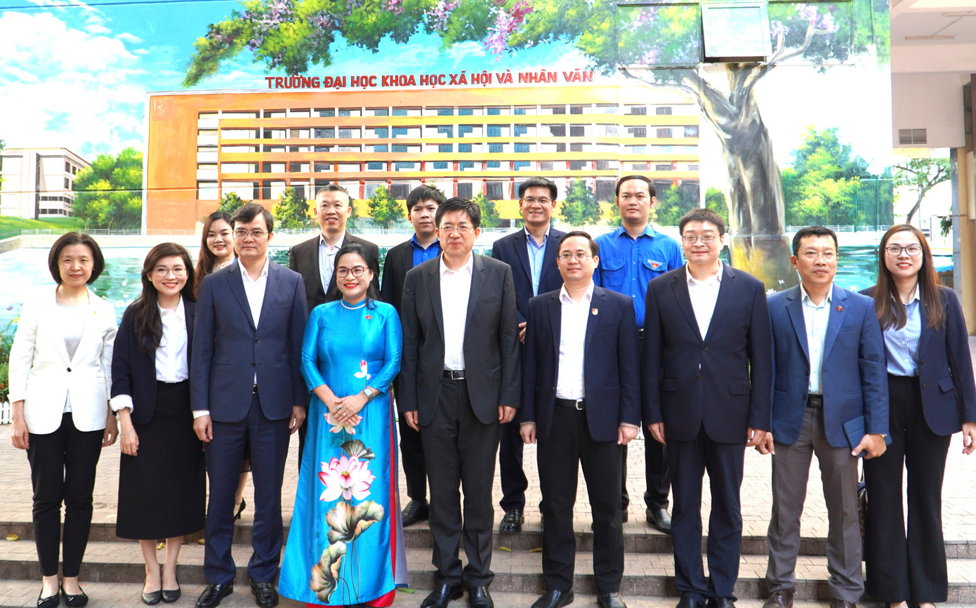 | Đoàn đại biểu cấp cao Đoàn TNCS Trung Quốc, lãnh đạo T.Ư Đoàn TNCS Hồ Chí Minh cùng chụp ảnh lưu niệm với lãnh đạo trường ĐH KHXH&NV (ĐHQG Hồ Chí Minh). |