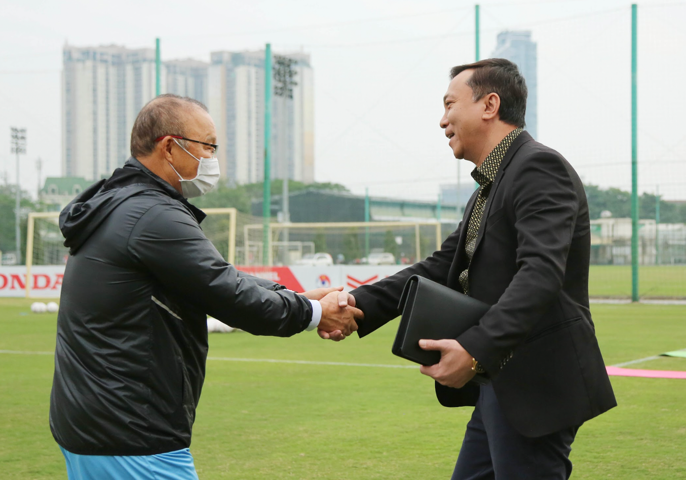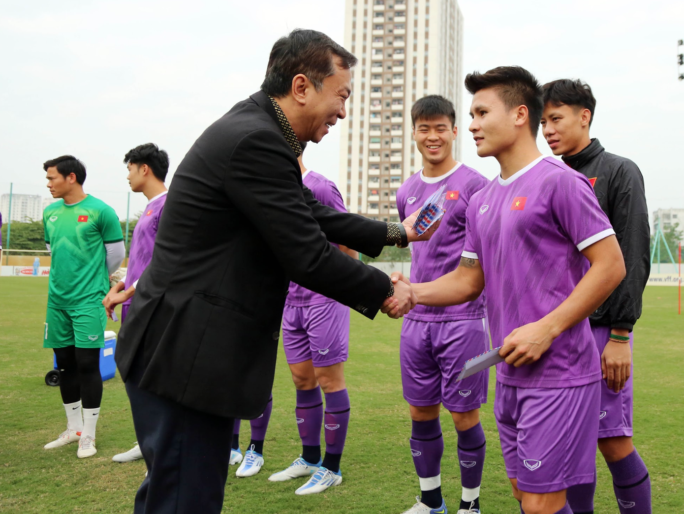 Trước buổi tập, thầy trò ông Park đã được Chủ tịch Liên đoàn bóng đá Việt Nam (VFF) Trần Quốc Tuấn thăm, động viên và tặng quà đầu năm. Ông Trần Quốc Tuấn đánh giá cao nỗ lực của đội tuyển Việt Nam qua 3 trận đấu tại vòng bảng, đồng thời mong muốn các cầu thủ tiếp tục tập trung, tự tin thi đấu để giành kết quả tốt.