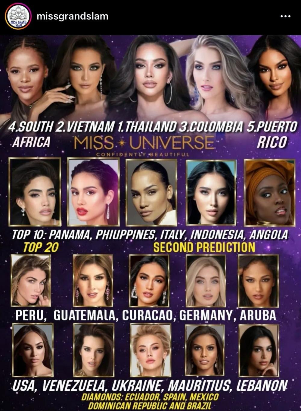 Một chuyên trang khác lại dự đoán vương miện sẽ thuộc về đại diện của Thái Lan, Hoa hậu Ngọc Châu giành Á hậu 1.