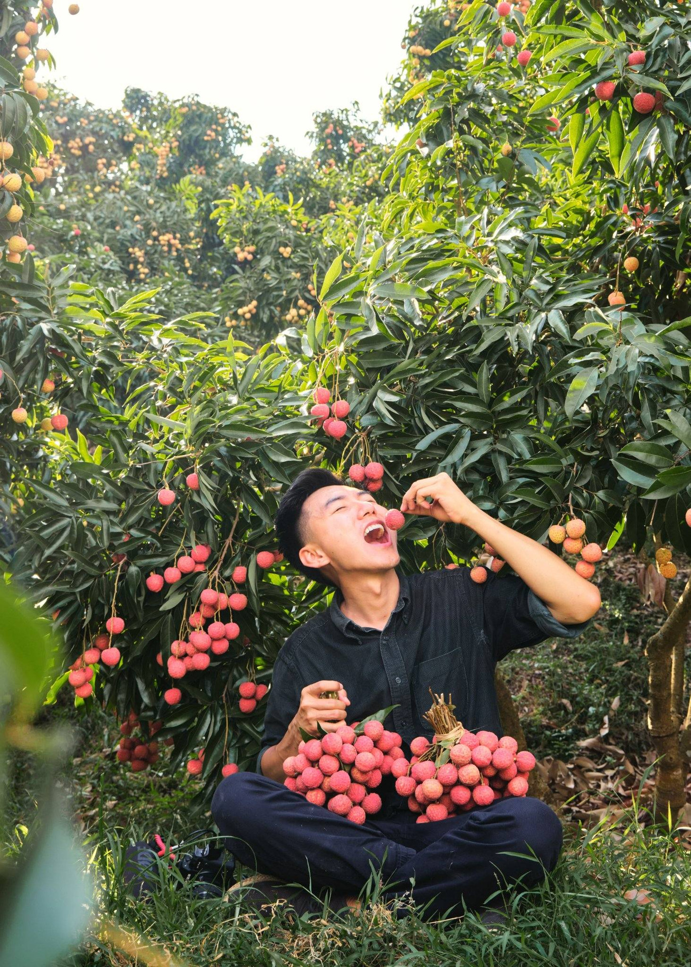 Trải nghiệm tour du lịch hái vải đêm tại Bắc Giang, mỗi du khách sẽ được trang bị một chiếc đèn pin và một chiếc giỏ để có thể soi và tìm xem chùm vải nào chín nhất, ngon nhất để hái.