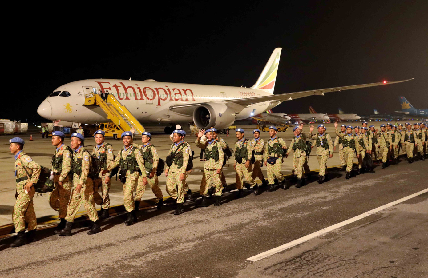 | Máy bay của hàng không Ethiopian Airlines chở ĐCB số 1 hạ cánh xuống sân bay Nội Bài vào rạng sáng 15/8. |
