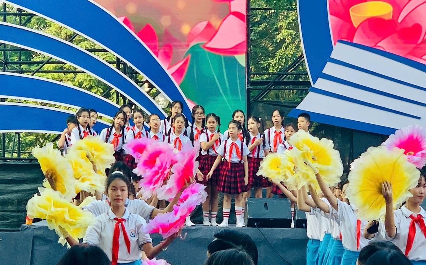 Liên khúc hợp xướng “Bác Hồ người cho em tất cả - Ai yêu Bác Hồ Chí Minh hơn thiếu niên nhi đồng” mở màn của đội hợp xướng trường Tiểu học Văn Chương đã để lại ấn tượng sâu sắc trong lòng người xem với những giai điệu vui tươi, trong sáng. Các bạn nhỏ đã mang đến không khí sôi động, đầy niềm tự hào và phấn khởi, thể hiện tình yêu quê hương, đất nước và niềm đam mê học tập. Trang phục gọn gàng, tươi tắn đã góp phần tôn thêm vẻ đẹp của tiết mục.