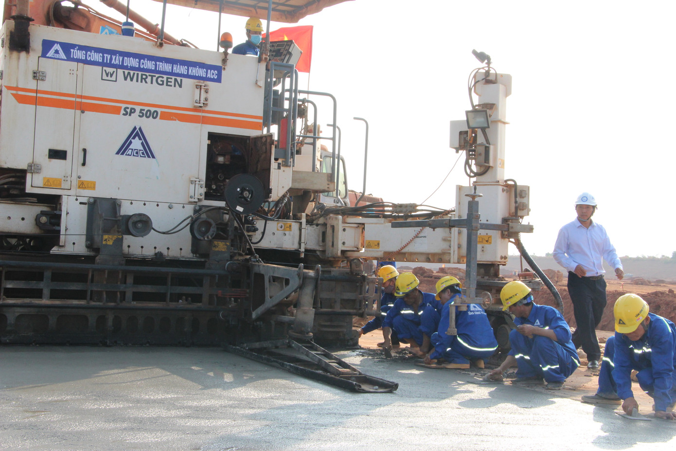 Đến nay, công tác thi công đường cất hạ cánh đang bám sát tiến độ, về cơ bản đã hoàn thành các hạng mục nền đất, nền cát; lớp cấp phối đá dăm đã hoàn thành trên 70%.