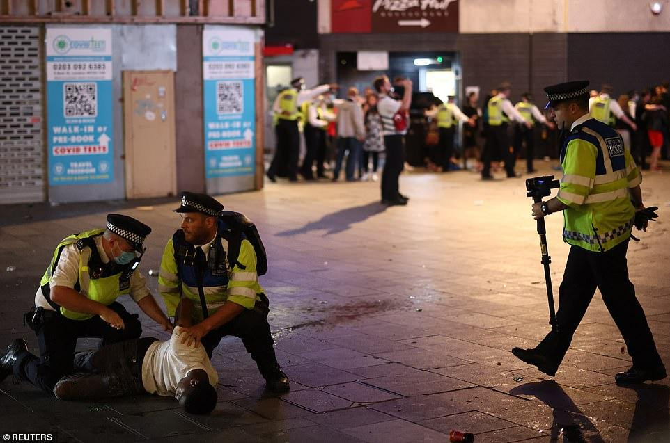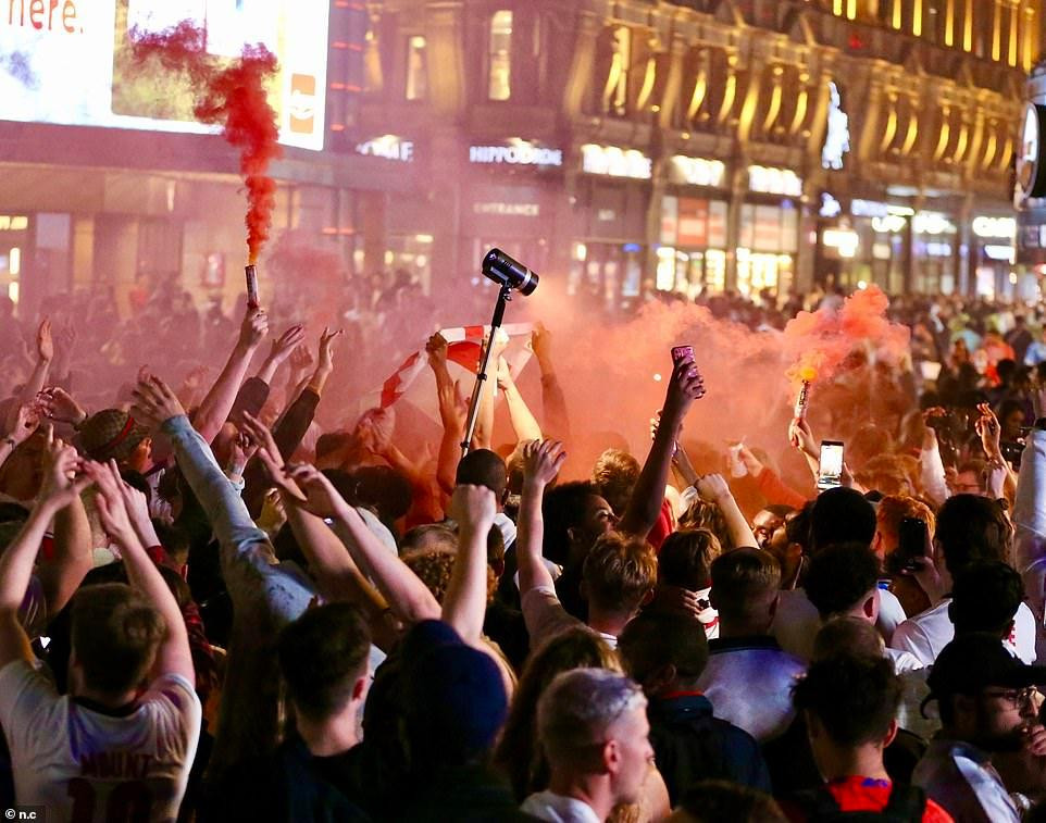 Đa số họ đều không đeo khẩu trang và liên tục ném pháo sáng khắp các đường phố khiến cảnh sát phải can thiệp. Một số người còn trèo lên đài tưởng niệm Shaftesbury để ăn mừng. Những chiếc xe máy rồ ga, nhả khói trên đường phố càng khiến tình hình trở nên khó kiểm soát.