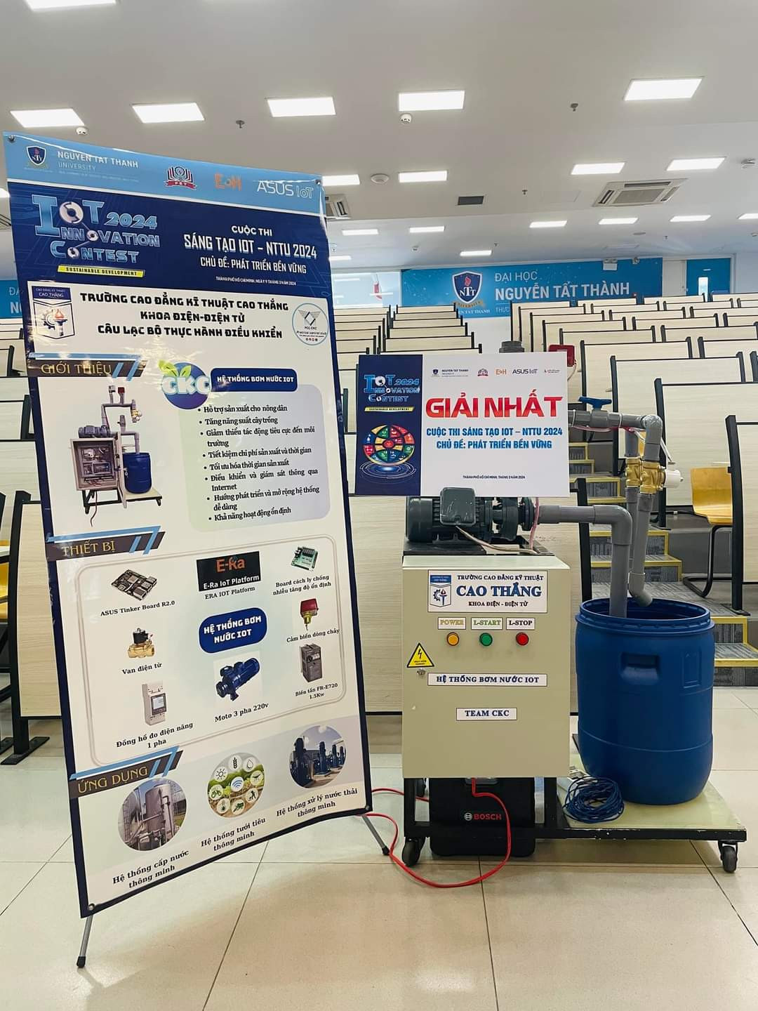 | "Hệ thống bơm nước IOT" của đội đội CKC đến từ trường CĐ Kỹ thuật Cao Thắng. (Ảnh: NTCC) |