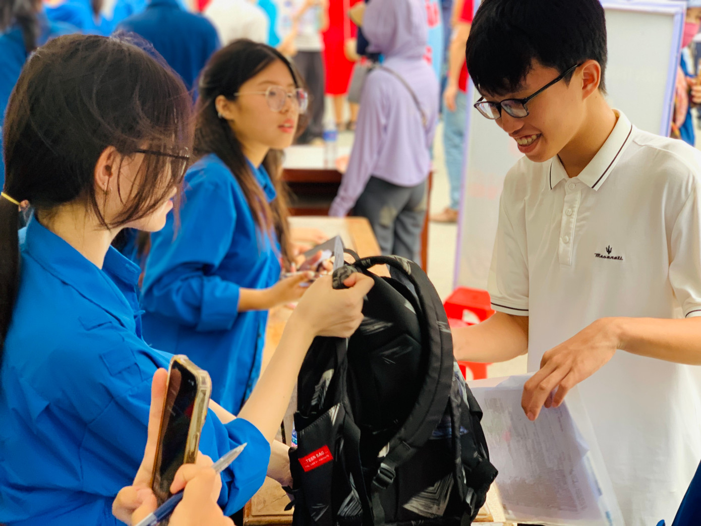 | Đội hình tình nguyện viên phụ trách trông giữ đồ dùng cho thí sinh trong hoạt động "Tiếp sức mùa thi" 2023. |