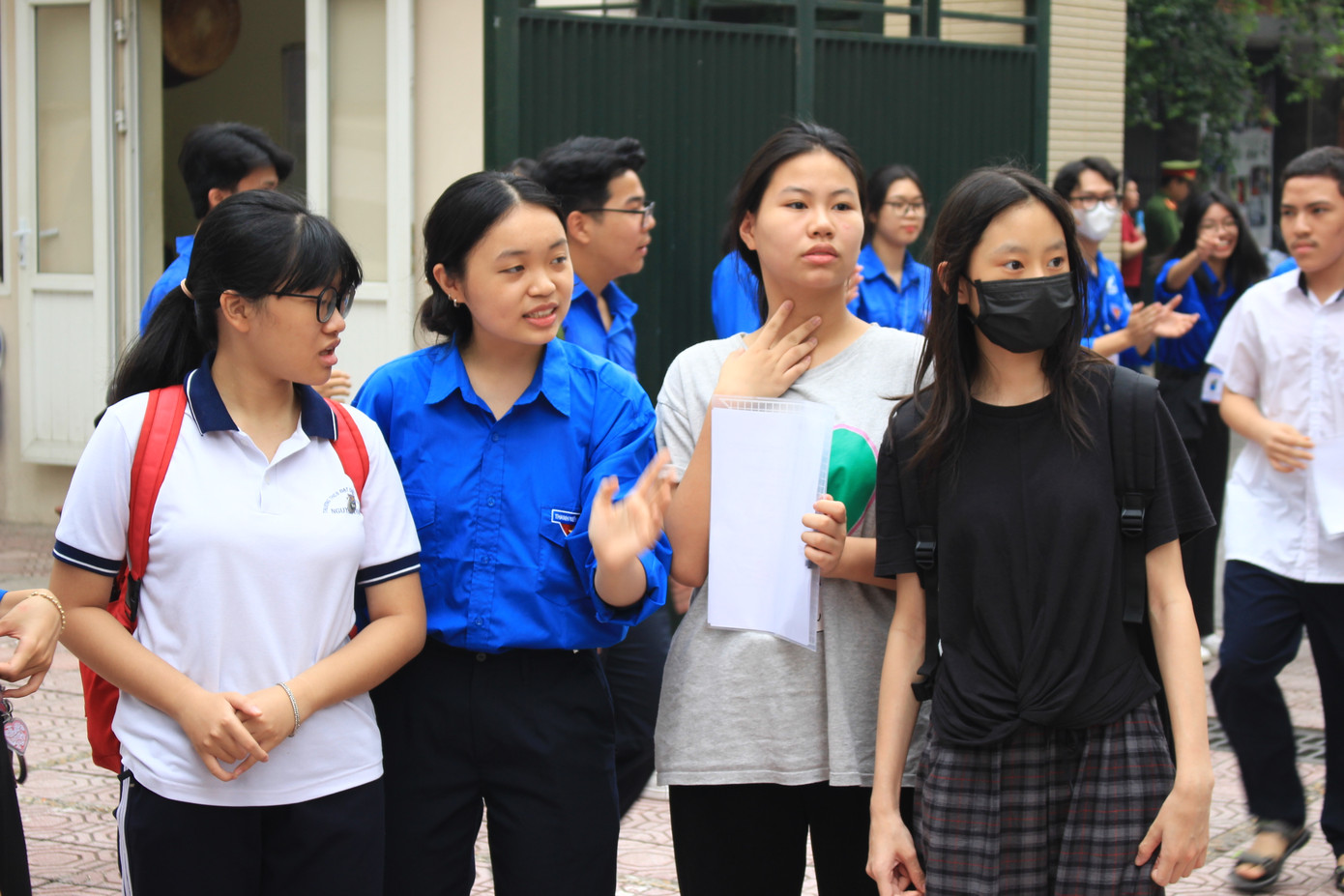 | Tập thể tình nguyện viên "Tiếp sức mùa thi" hô khẩu hiệu chúc các sĩ tử thi tốt. |