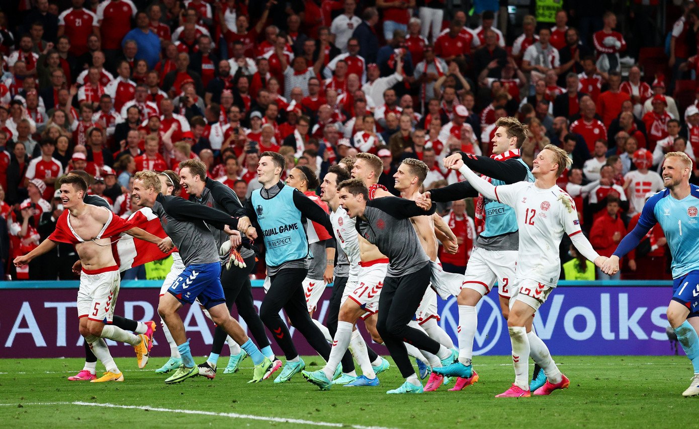 Sau chiến thắng 4-1 trước Nga, các cầu thủ Đan Mạch hồi hộp kiểm tra kết quả trận Phần Lan gặp Bỉ thông qua điện thoại của một thành viên trong ban huấn luyện. Bỉ đánh bại Phần Lan với tỉ số 2-0, đồng nghĩa với việc Đan Mạch chính thức giành vé vào vòng 16 đội với tư cách đội nhì bảng B. Toàn bộ thành viên đội tuyển Đan Mạch ôm nhau ăn mừng đầy xúc động khi biết kết quả chính thức.
