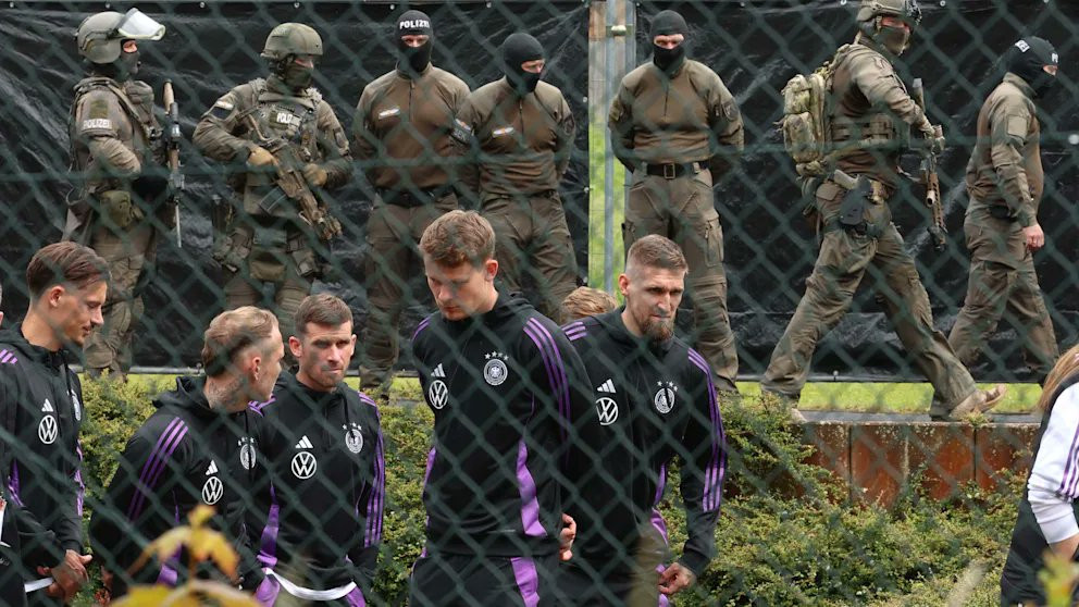 Họ được chào đón bằng những âm thanh chát chúa của nhạc mạnh. Ngay sau đó, dưới sự hướng dẫn của các sĩ quan an ninh, dàn sao triệu đô của ĐT Đức phải vượt qua chướng ngại vật, dùng khiên, đeo mặt nạ cảnh sát để chiến đấu với nhau. Cuối cùng, họ trèo lên tòa tháp cao 20 mét để treo cờ Đức, trước khi giải quyết một nhiệm vụ đặc biệt.