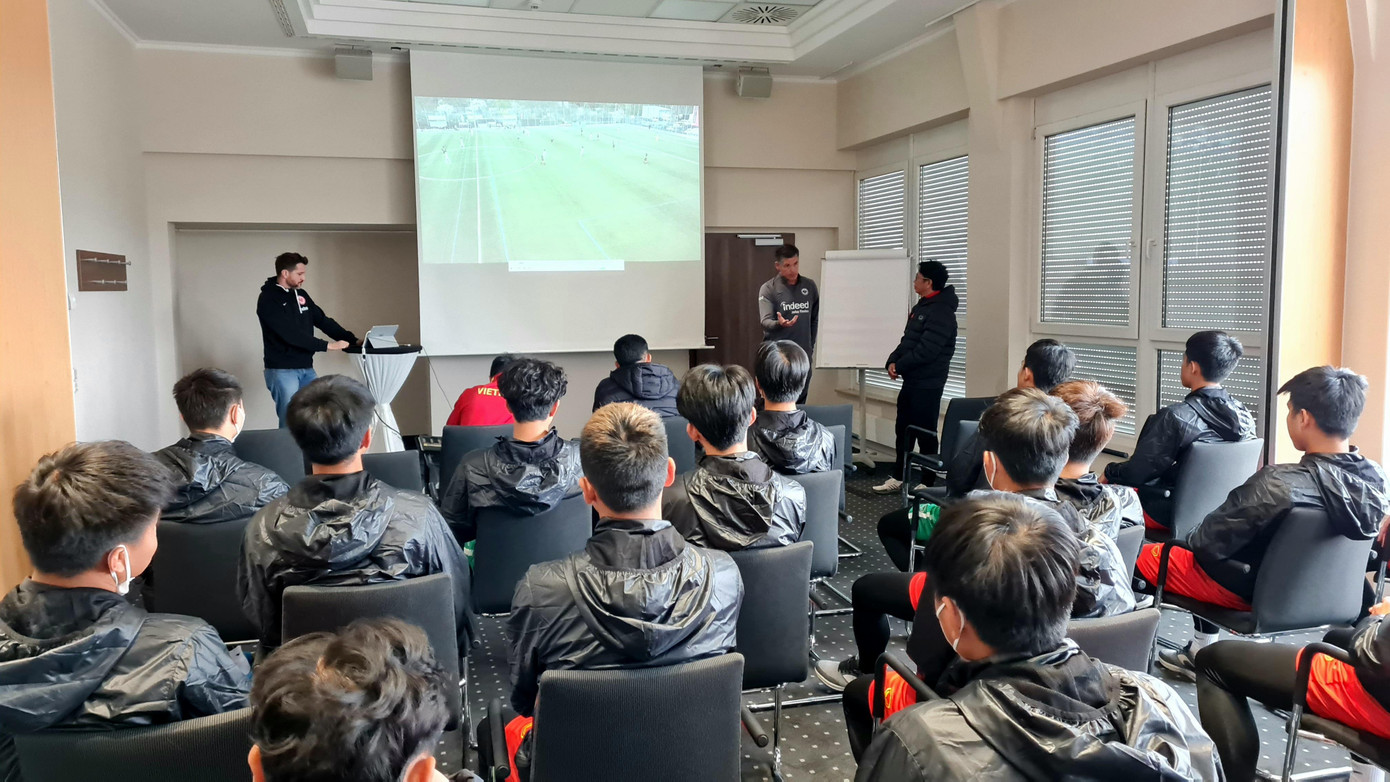 “Chống phản công” là chủ đề xuyên suốt mà các cầu thủ U17 Việt Nam được học và thực hành trong một tuần tại Frankfurt. Đây là lối chơi mà nhiều câu lạc bộ tại châu Âu, trong đó có Eintracht Frankfurt, thường xuyên áp dụng trong tập luyện và thi đấu.