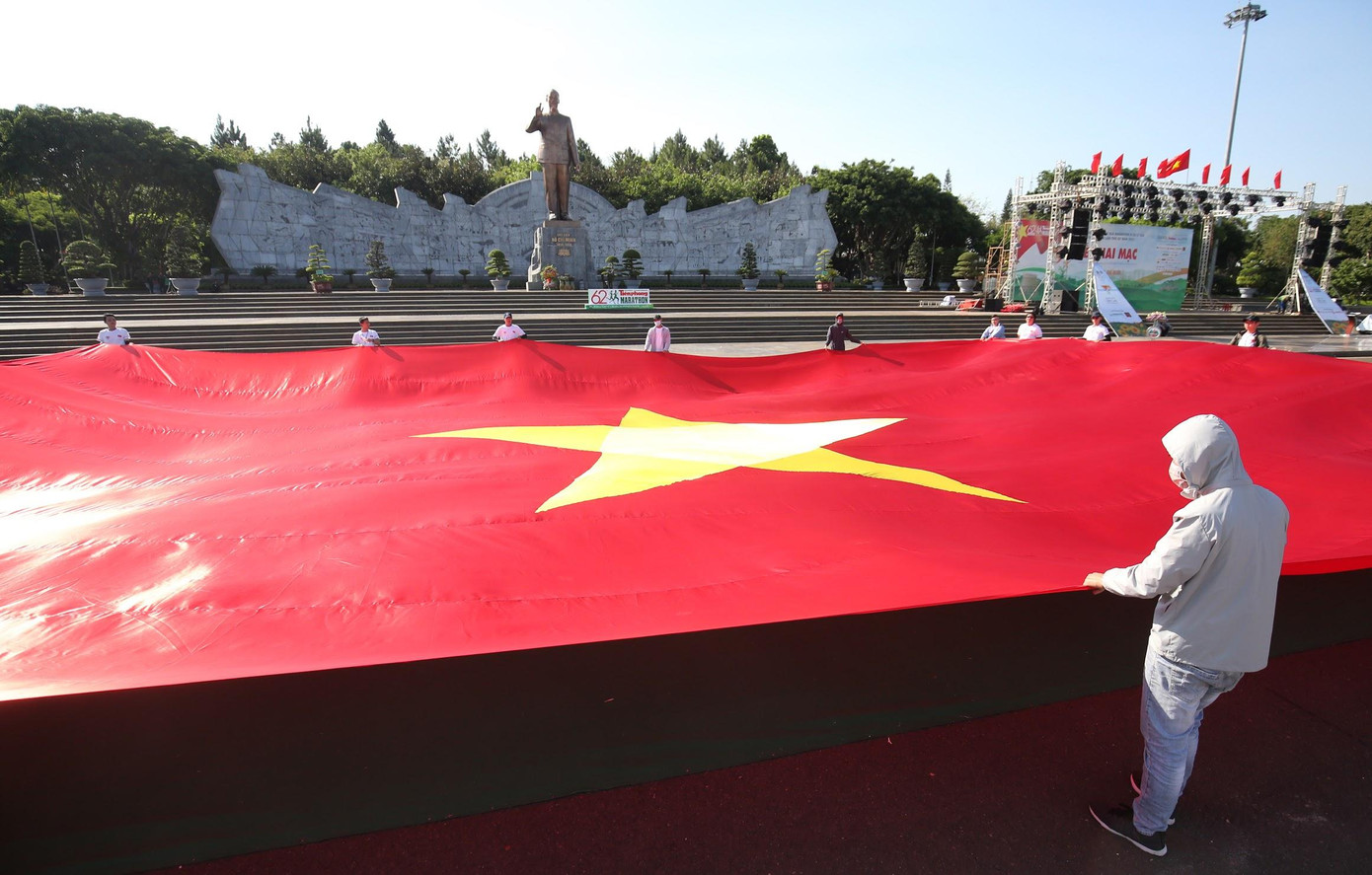 | Sau lễ Thượng cờ là màn trình diễn tôn vinh lá cờ Tổ Quốc rộng 300 mét vuông tại Quảng trường Đại Đoàn Kết |