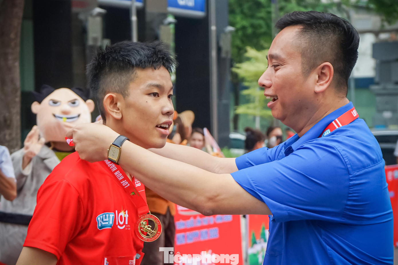 | Chị Nguyễn Phạm Duy Trang – Bí thư Trung ương Đoàn, Chủ tịch Hội đồng Đội Trung ương cùng anh Lê Anh Quân – Phó Trưởng Ban Công tác Thiếu nhi Trung ương Đoàn, Phó Chủ tịch Hội đồng Đội Trung ương thay mặt 3.000 thiếu nhi nhận bằng xác lập kỷ lục |