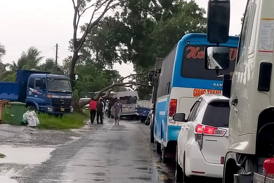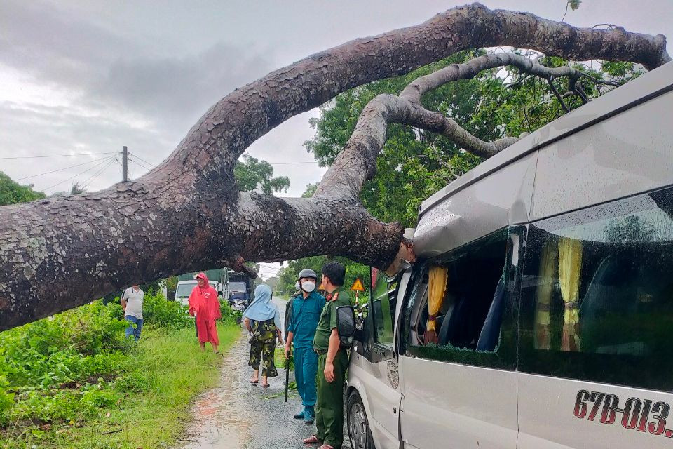 Kiên Giang: Gió lớn làm cây xà cừ bật gốc, đè ô tô 16 chỗ