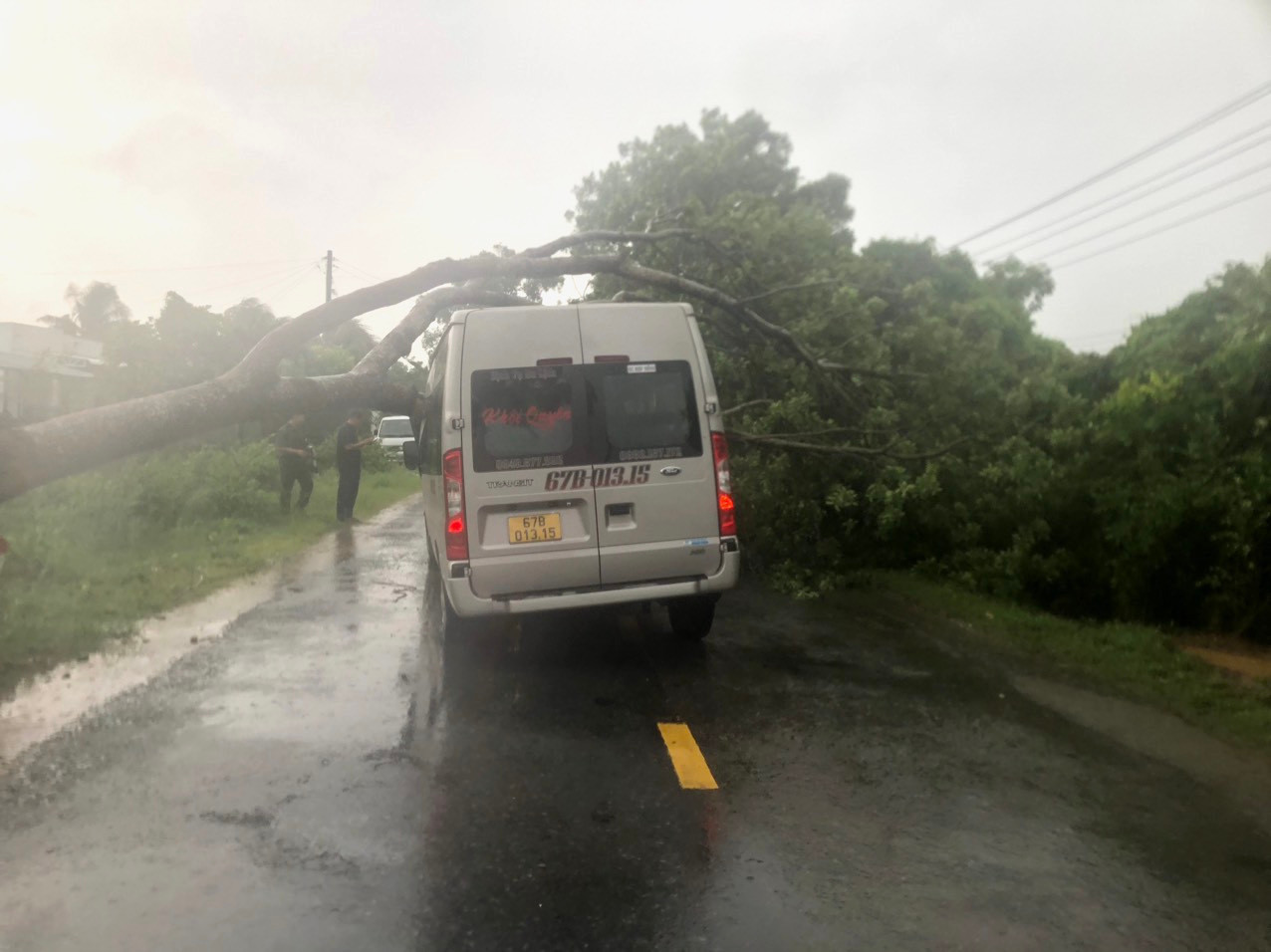 Theo thông tin ban đầu, khoảng 15 giờ 30 phút ngày 17/7, ô tô 16 chỗ mang biển kiểm soát 67B 013.15 đang lưu thông trên quốc lộ N1, hướng từ huyện Giang Thành về TP. Hà Tiên (Kiên Giang) thì bất ngờ bị cây xà cừ lớn bật gốc, đè ngang thân xe.