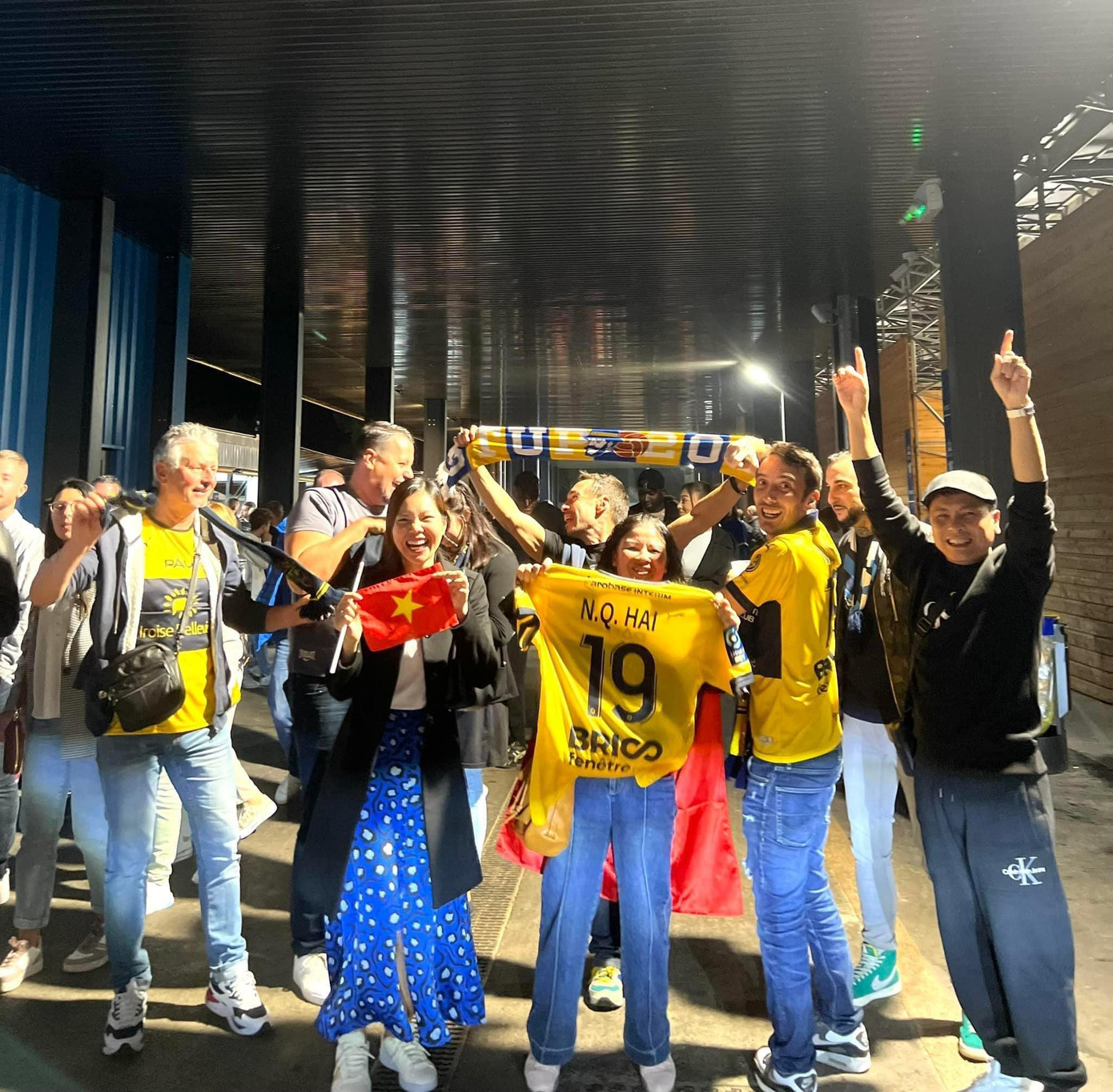 Bố mẹ Quang Hải đã có mặt trên khán đài sân và mang theo cờ Việt Nam. Điều này cũng giải thích cho màn ăn mừng thả tim của ngôi sao mang số áo 19. Ngoài ra, rất nhiều người Việt Nam ở châu Âu cũng đã có mặt để ủng hộ.