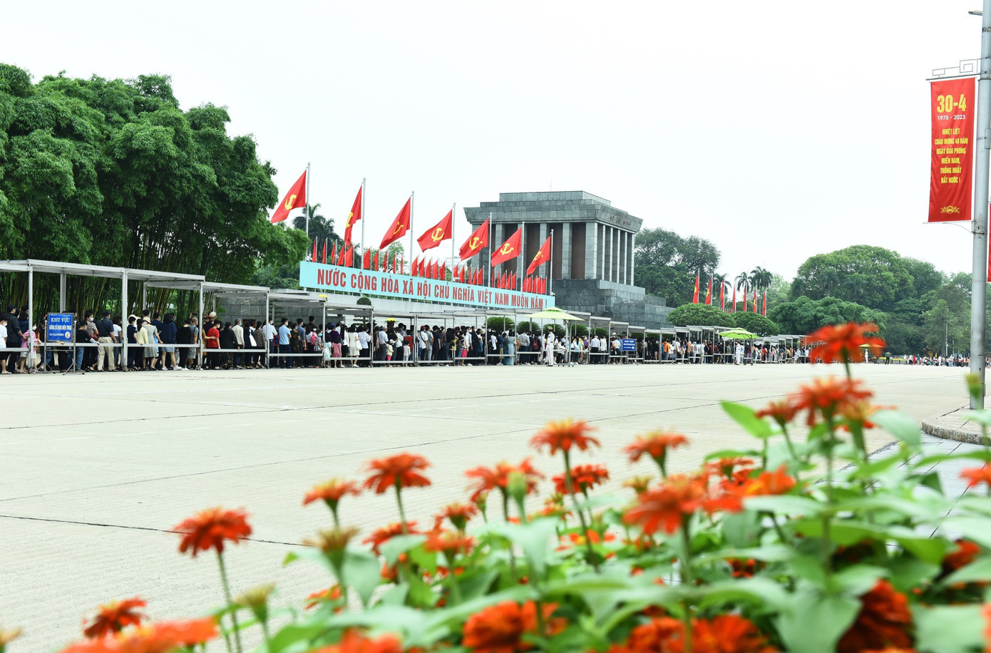 Theo Ban quản lý Lăng Chủ tịch Hồ Chí Minh, chỉ riêng trong sáng 30/4, có gần 24.000 người tới Lăng, viếng Chủ tịch Hồ Chí Minh, trong đó có 1.130 du khách nước ngoài.