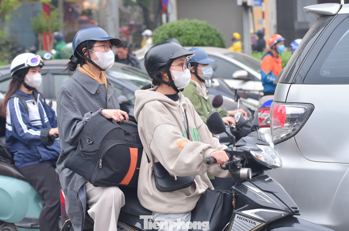 | Lượng người tăng đột biến khiến nhiều tuyến đường tắc nghẽn, một số tuyến đường như đường Trường Chinh hướng ra Giải Phóng ùn ứ kéo dài. |