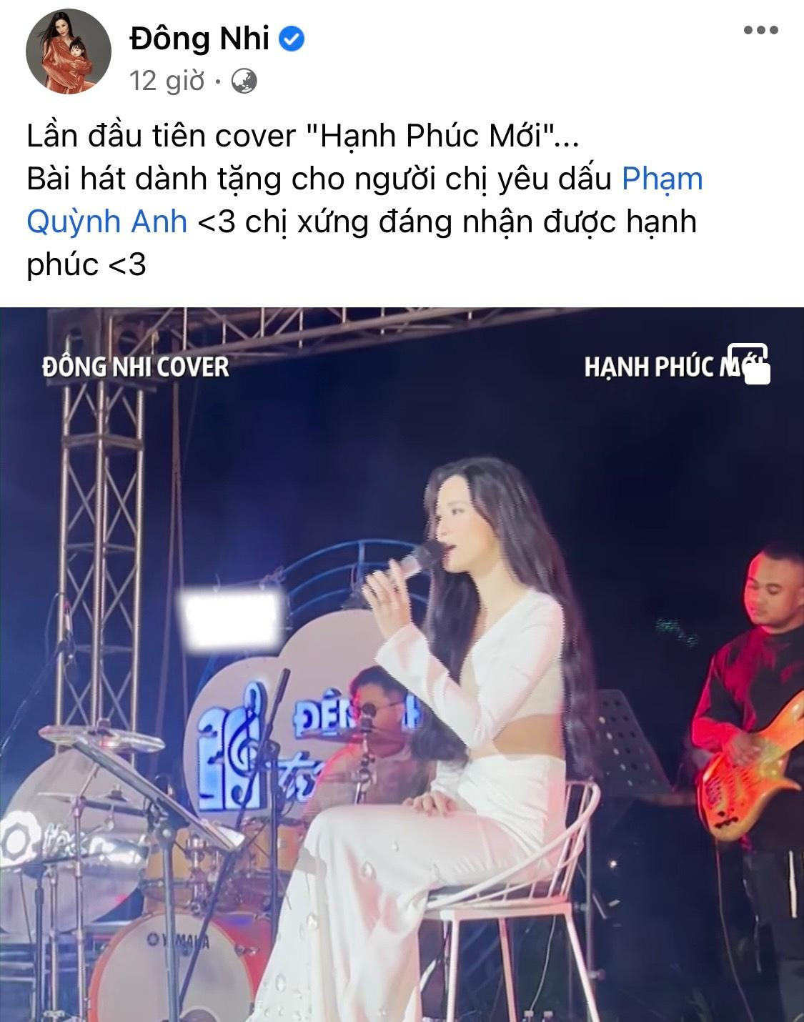 Mới đây, trong mini show được tổ chức tại Đà Lạt, Đông Nhi đã có dịp cover lại ca khúc Hạnh Phúc Mới của Phạm Quỳnh Anh. Trên trang Facebook của mình, nữ ca sĩ đã đăng tải lại video cô trình diễn bài hát này cùng đôi lời nhắn nhủ: "Lần đầu tiên cover 'Hạnh Phúc Mới'... Bài hát dành tặng cho người chị yêu dấu Phạm Quỳnh Anh. Chị xứng đáng nhận được hạnh phúc".